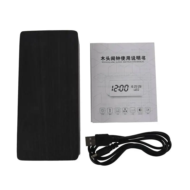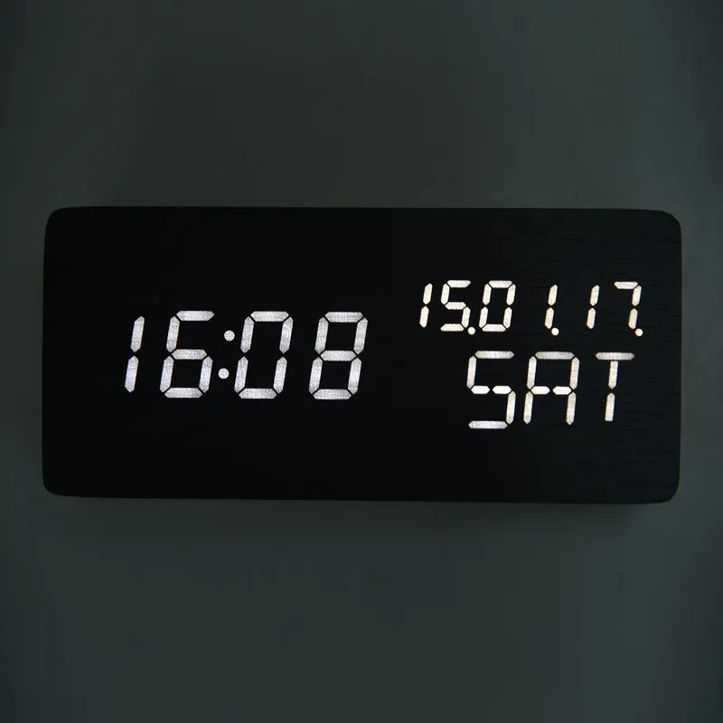 Светодиодный Будильник, деревянный светодиодный Будильник, отображение времени недели и температуры, квадратный деревянный звуковой стол