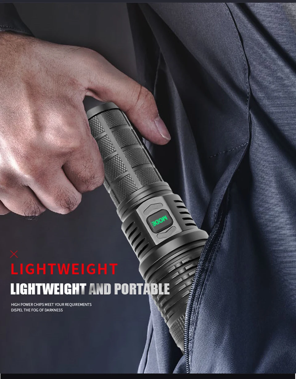 Бренд: Litwod Модель: P72D-9HИсточник света: XHP99 / XHP90.2Цвет внешнего вида: черный3-скоростной режим: сильный-слабый-стробоскопМощность: 1x26650 аккумулятор или 1x18650 аккумулятор Время освещения: аккумулятор 18650 3-2 часа; Аккумулятор 26650: 6-12 часов Метод зарядки: Micro USB Прямая зарядка Диапазон: от 200 до 500 метров Зум: зум-объектив (увеличение/уменьшение Зума )Водонепроницаемость: IPX4 Вес: 224 грамма (без аккумулятора) Материал: T6063-T6 авиационный алюминийВнешний аккумулятор: ПоддержкаИспользование: семья, охота, патрулирование, строительство, пробуждение, техническое обслуживание, поиск и спасение