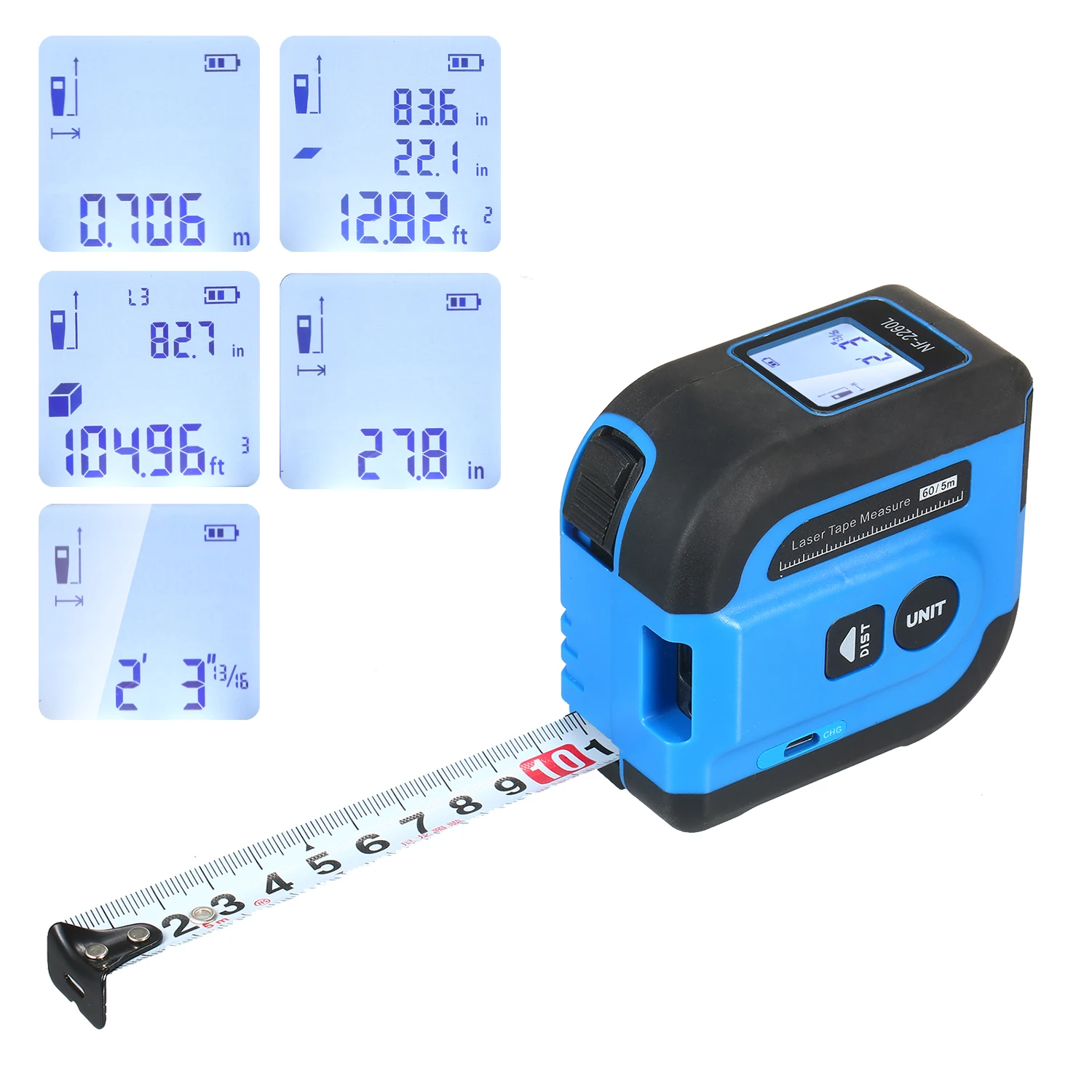 2 в 1 цифровая измерительная лента сочетает лазерное измерение с измерением ленты, с большим цифровым дисплеем, автоматическим замком, классической измерительной лентой 16 футов, 196ft(NF-2260L) или 131ft(NF-2240) лазерное измерение и смешанные математические вычисления. Самоблокирующийся измеритель расстояния обеспечивает высокоточное измерение, имеет прочную структуру для длительного использования. Требуемая портативная рулетка для строительных подрядчиков, риелторов или домашнего использования.