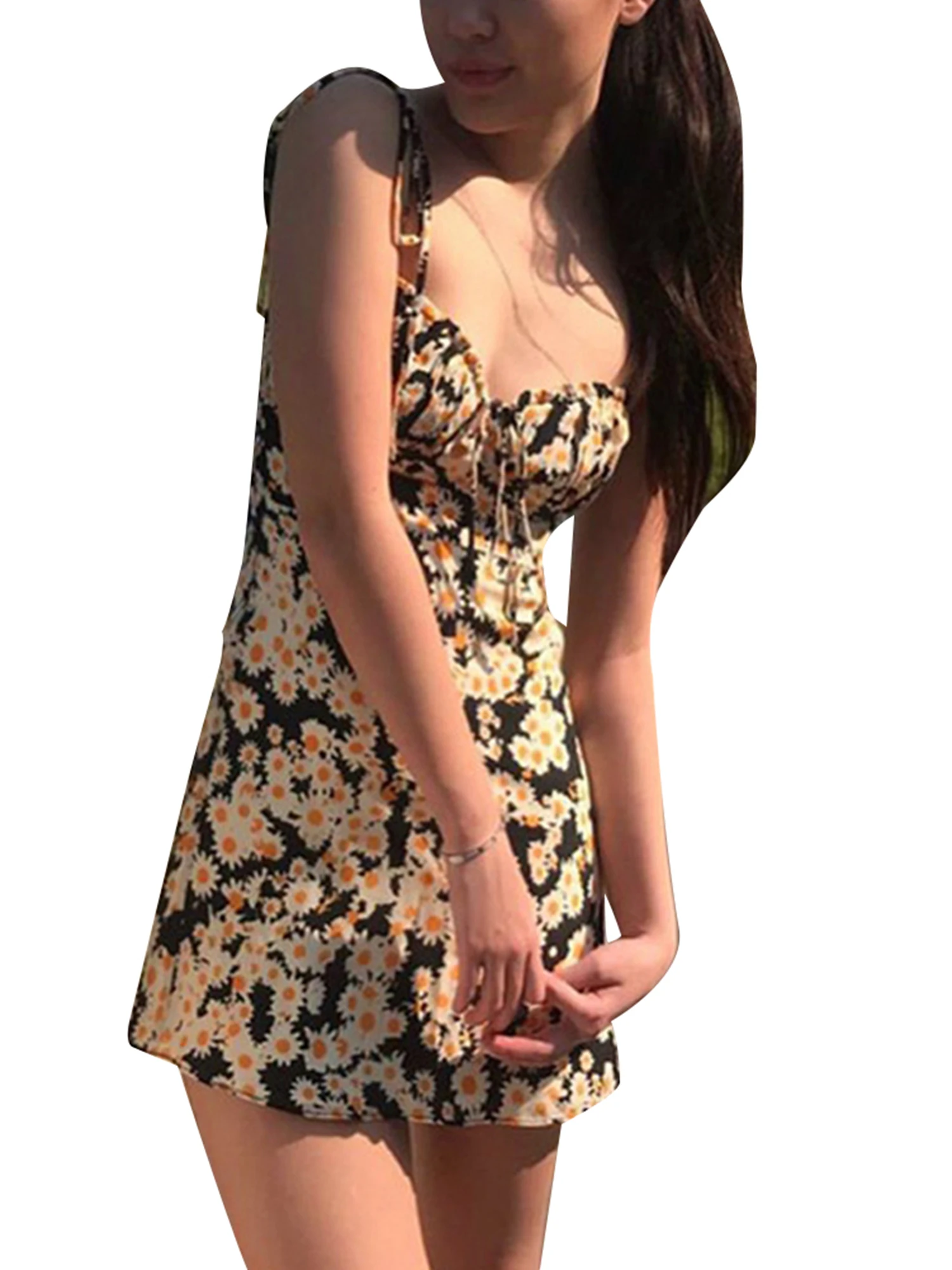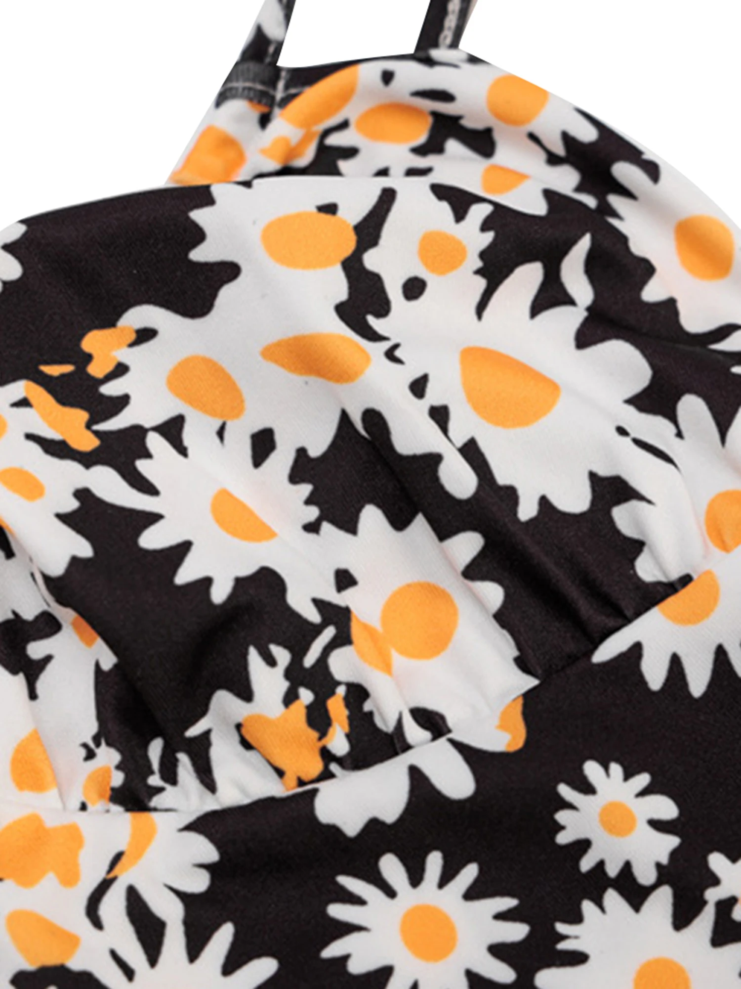 Creative design: V-neck, sleeveless, chrysanthemum floral print, lace-up, low-cut, slim, backless, slim waist detail design, elegant suspender dress will make you shine and you will become the focus of the crowd.