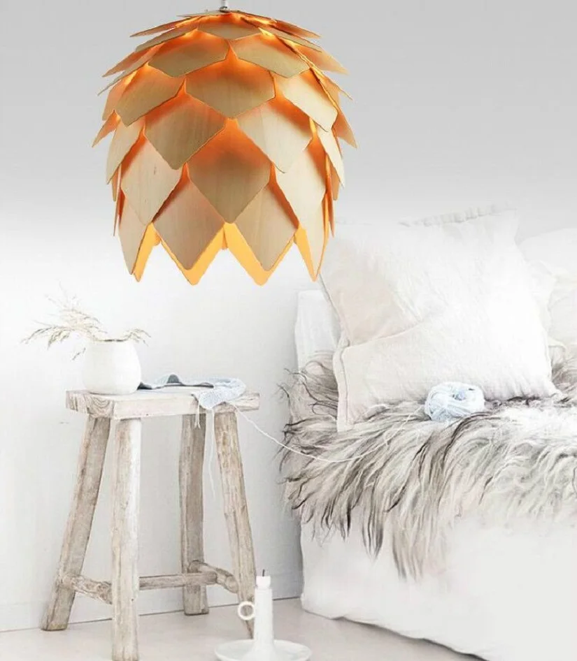 Ретро скандинавские светодиодные подвесные лампы Pinecone, современные деревянные современные DIY IQ элементы, пазл, спальня, искусство, деревянные лампы светильник ветительные приборы