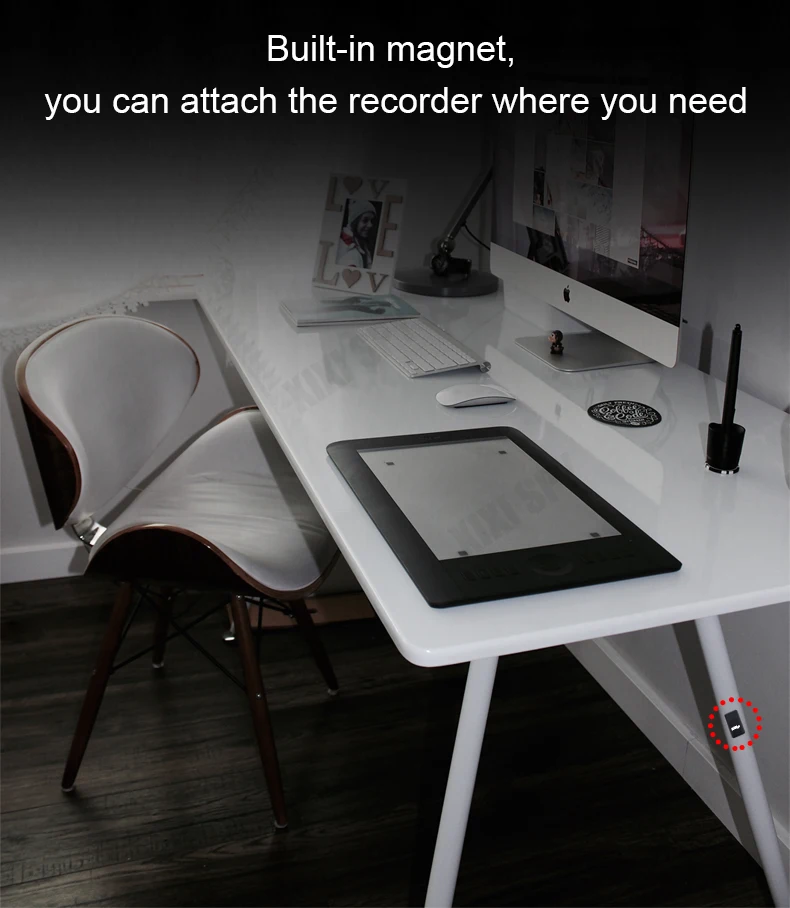 Встроенный магнит, вы можете прикрепить рекордер там, где вам нужен