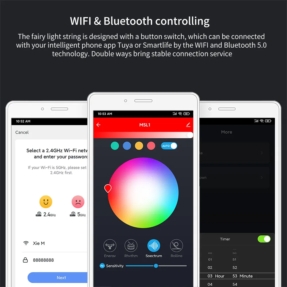 Особенности: Управление WIFI и Bluetooth Сказочный светильник разработан с помощью кнопочного переключателя, который может быть подключен к интеллектуальному приложению для телефона Tuya или Smartlife по технологии Wi-Fi и Bluetooth 5,0. Двойные способы обеспечивают стабильное подключение. Со встроенным микрофоном, светильник поддерживает alexa и google голосовой помощник, удобно управлять светильник на дальнем расстоянии, которые могут изменить его светильник цвет в соответствии с музыкой как wellz (четыре музыка светильник режимы). Инфракрасный пульт дистанционного управления и регулируемый светильник Прикрепленный с пультом дистанционного управления, светильник удобно управляется контроллером. Есть 16 светильник цвета и 12 виды светильник режимов для вас на выбор, 6 уровней яркости может быть предоставлена, четыре таймер режимов (1 h, 2 h, 4 h, 8н) для удовлетворения ваших потребностей в использовании. Usb-интерфейс питания Сказочный светильник разработан с интерфейсом USB, удобным для пользователей, чтобы найти подходящий источник питания, такой как внешний аккумулятор, разъем USB и так далее. Кабель питания длиной 103 см/3,37 фута удобен для ежедневного использования. Дизайн металлической проволоки Сказочный светильник можно свободно менять форму, чтобы обеспечить лучший сервис фиксации, практичный и удобный. Светильник большого размера с бусинами на металлической проволоке дает отличный эффект на светильник. Область применения Сказочный светильник строка широко подходит для вечерние, для спальни, для дома, сад, патио, балкон, стены, окна и так далее. Примечание: В светильник строка может не может быть свободно обрезается в размерную сетку США самостоятельно. Спецификация: Тип: Сказочный светильник Количество: 1 комплект Материал: пластик + металл + электрический компонент Цвет: как показано Цветной светильник: RGB Количество бусин: 5 м-50 шт 10 м-100 шт Аккумулятор: кнопочный аккумулятор (входит в комплект) Длина кабеля питания: 103 см Входное напряжение: 5 В WI-FI: 802.11b/g/n, 2,4 ГГц Bluetooth: 5,0 Частота Bluetooth: 2,4 ГГц Чувствительность RX: -92 дБм Микрофон: Встроенный Ручная кнопка управления: Поддержка Приложение для телефона: Tuya, Smartlife Шифрование: WEP, TKIP, AES Сила тока: 5 м-1 А 10m- 2a Светильник длина струны: Светодиодная лента 5 м 1,97 дюймов 10 м/3,93 дюйма Вес нетто: 137,5 г/4,85 унций 116,3g/4,1 oz Посылка: 1 * светильник феи 1 * USB кабель питания 1 * пульт дистанционного управления 1 * коробка для посылка