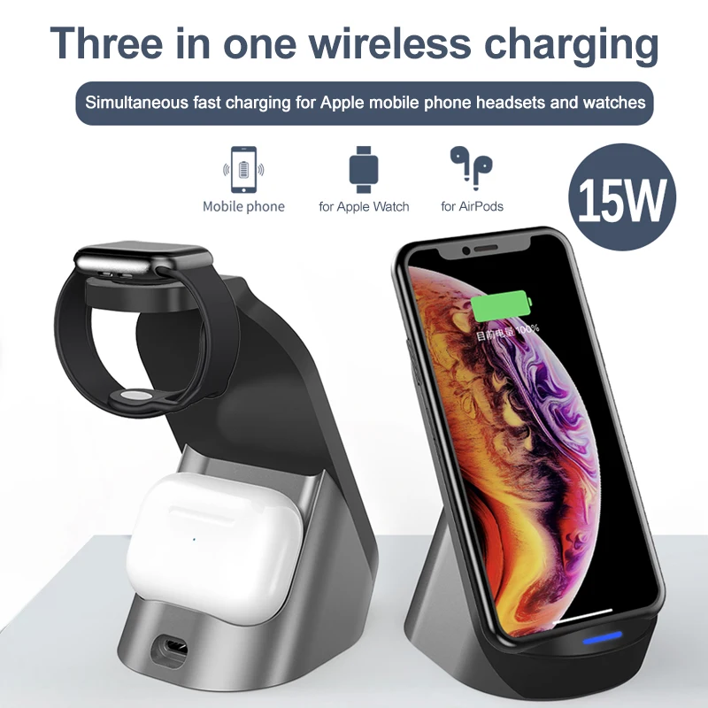 15 Вт Qi 3 в 1 Беспроводное зарядное устройство Подставка для телефона зарядное устройство для iPhone 11 Pro XS iWatch 5 4 Беспроводное Зарядное устройство Док-станция для AirPods Pro