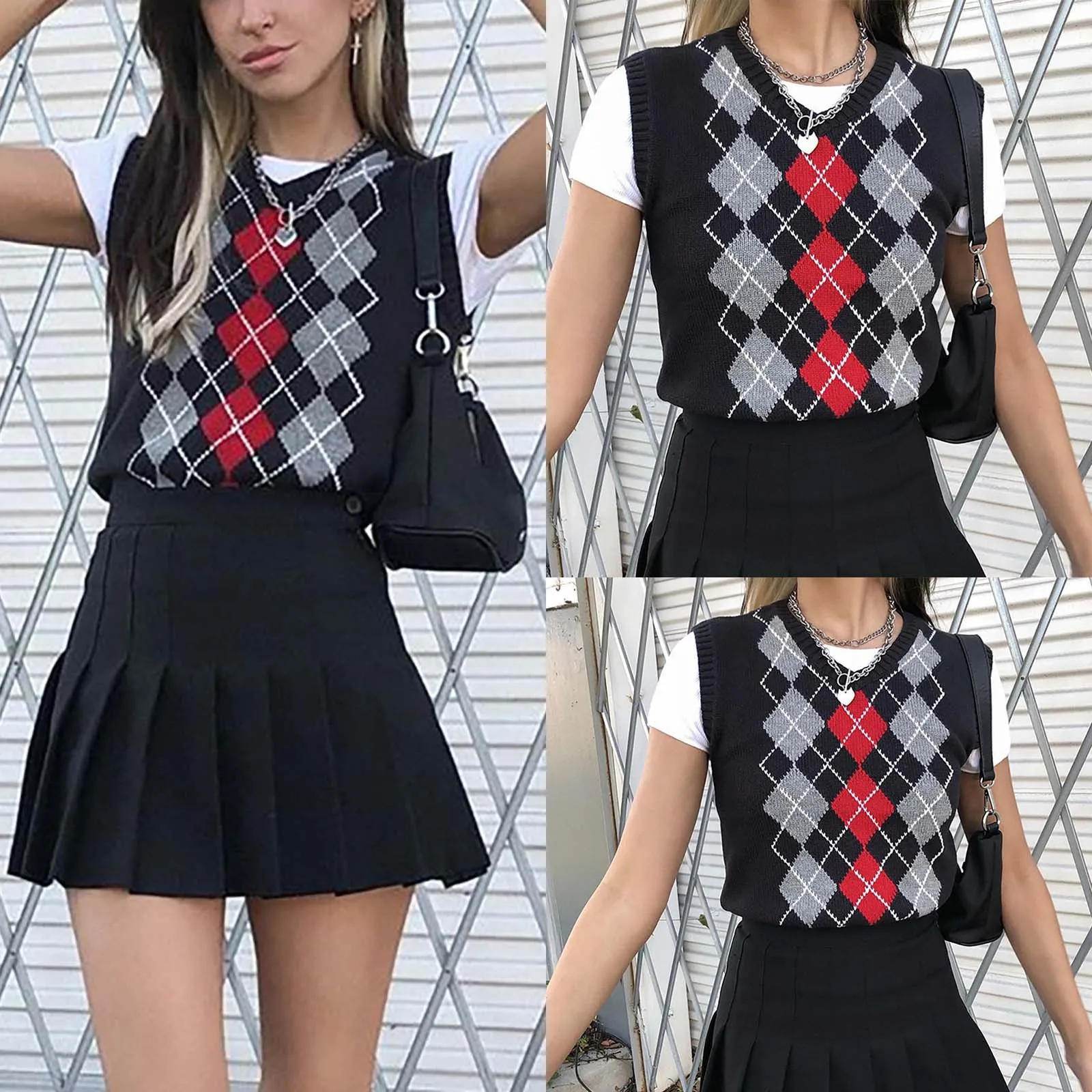 Женский Повседневный трикотажный топ в клетку, Трикотажный жилет в консервативном стиле с V-образным вырезом, свитер