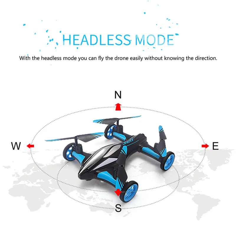 Функция: вперед/назад, вверх/вниз, влево/вправо, боковой полет, парящий, 3d-флип, Безголовый режим, высокая/Средняя/низкая скорость, возврат одним ключом, автомобильный режим работает на земле