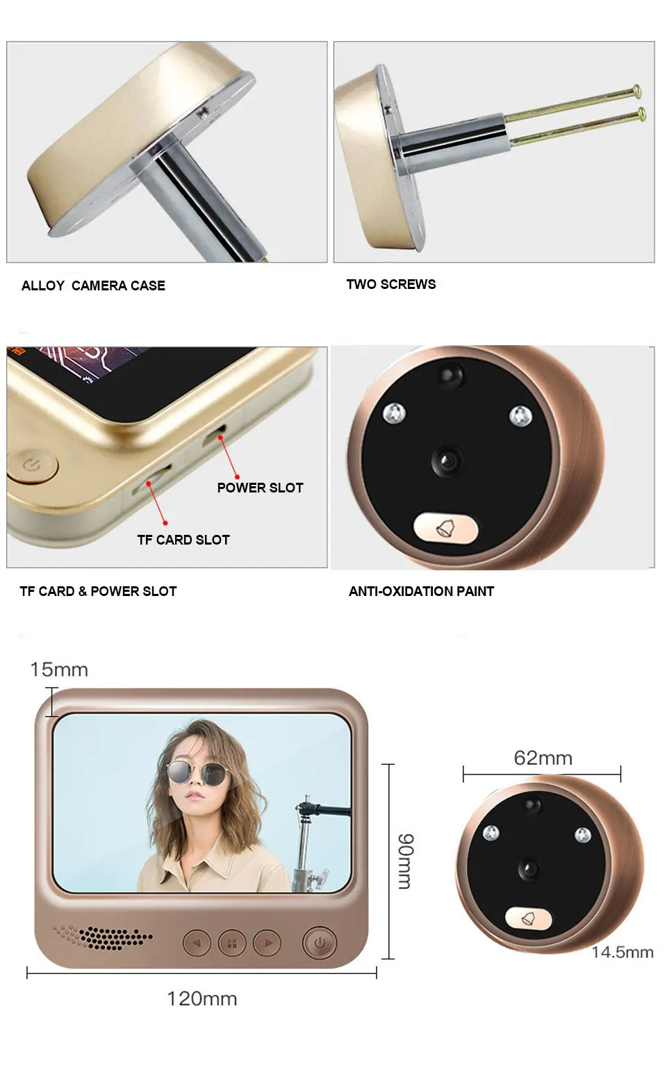 -Обнаружение движения и дверной звонок, нажмите автоматическую запись фото/видео (для записи видео требуется Вставить TF-карту (не входит в комплект)