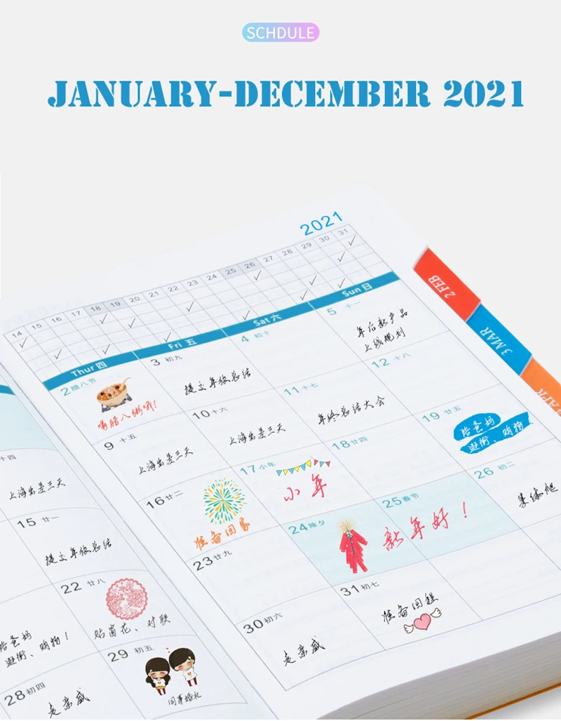 Описание продукта: Временной диапазон: 2021 с января по декабрь Внутренний Язык: английский и китайский Плотность бумаги: 100 GSM Внутренние листы: 400 страниц бумаги цвета слоновой кости высокого качества Функции страниц: самоинформация, календарь, адресные заметки, ежедневный план, Ежемесячный план, годовой план. Детали: 1. Название товара: новая программа модной одежды с января по декабрь 2021 года 2. Материал изделия: бумага + кожаный мягкий чехол 3. Спецификация товара: A5 4. Размер крышки: 150*210 мм 5. Размер внутренней страницы: 142*208 мм 6. Внутренние страницы: 352 страниц 70 GSM белая бумага 7 посылка: мы используем пузырчатый пакет, чтобы Плотно Обернуть продукт, чтобы избежать повреждений во время транспортировки. Удачных покупок!