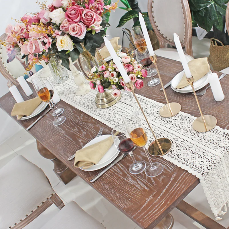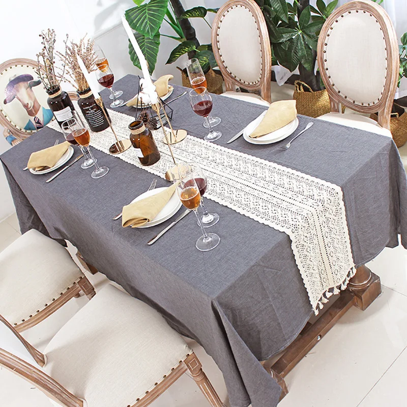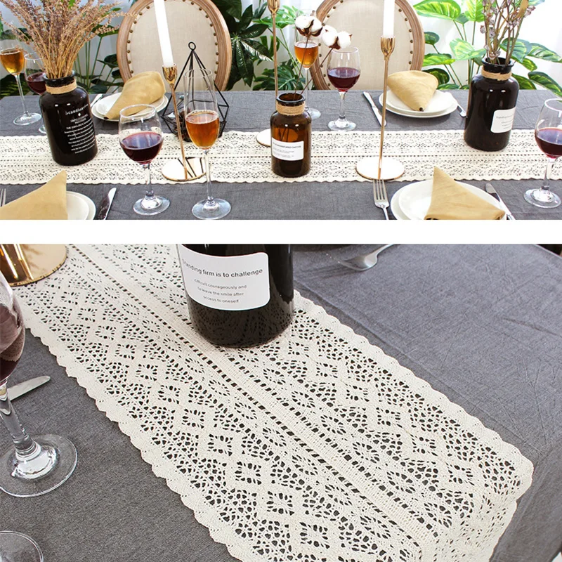 Новогодняя Кружевная декоративная скатерть с кисточками 24*180 см, тканая Ретро винтажная скатерть для стола, скатерть для журнального столика, товары для дома
