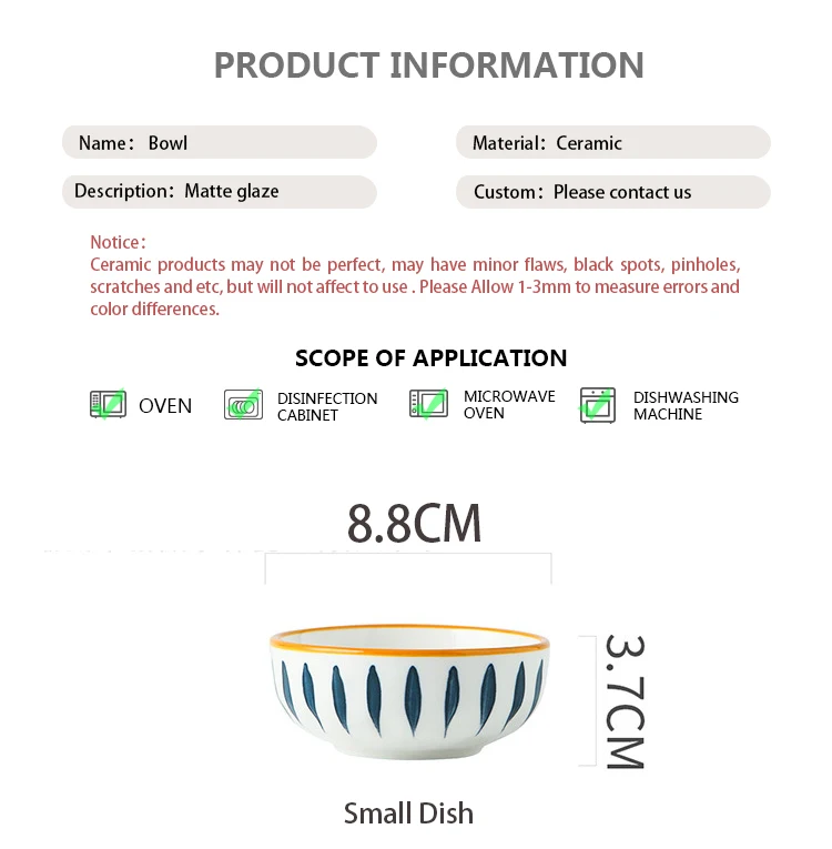 2. Керамика искусственно сделана и работает при высокой температуре. Могут быть небольшие дефекты, черные пятна, отверстия, царапины и т. д., которые являются нормальными явлениями и не влияют на использование. Размер измеряется вручную, есть определенная ошибка, фактический продукт должен превалировать.