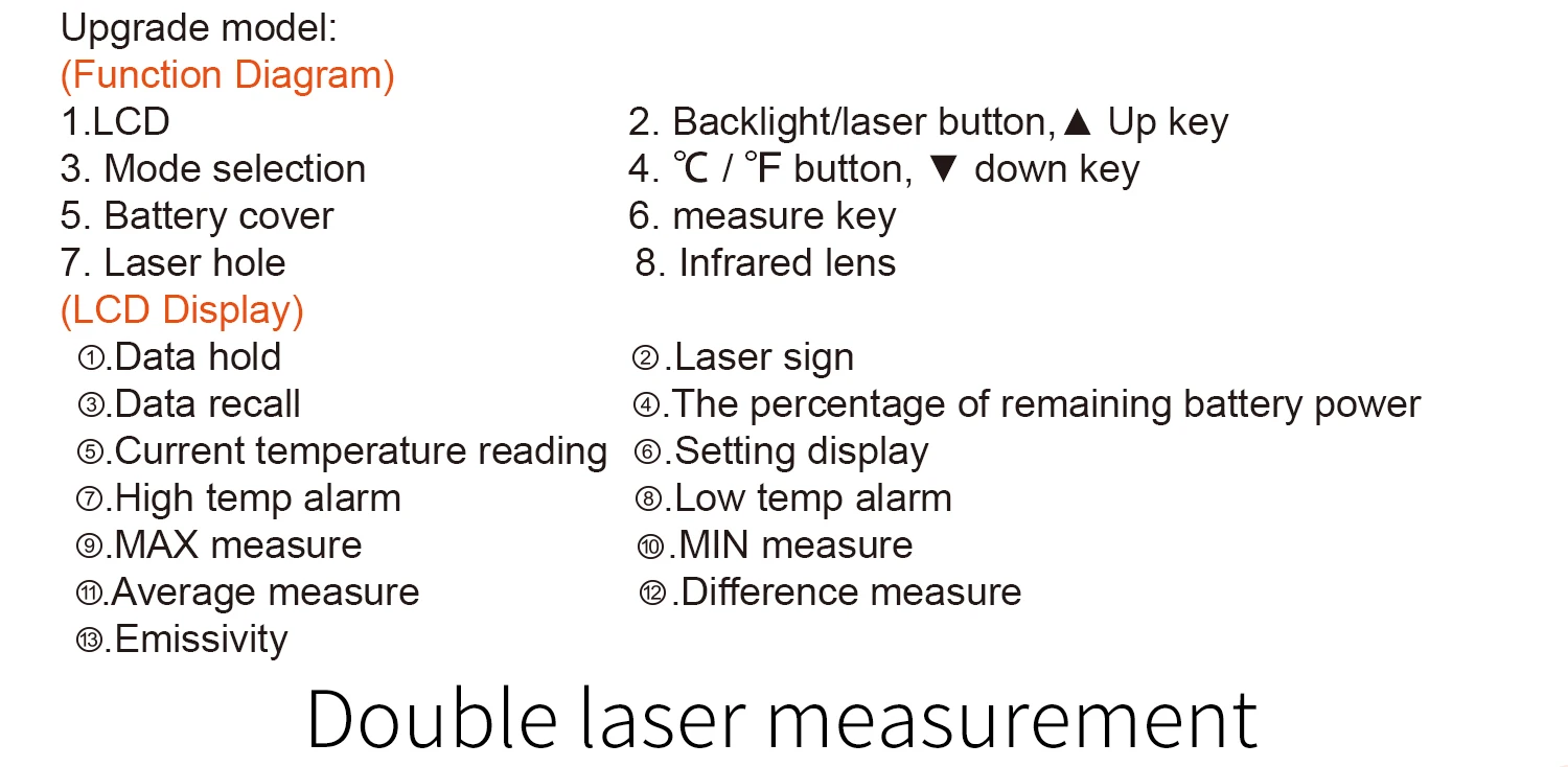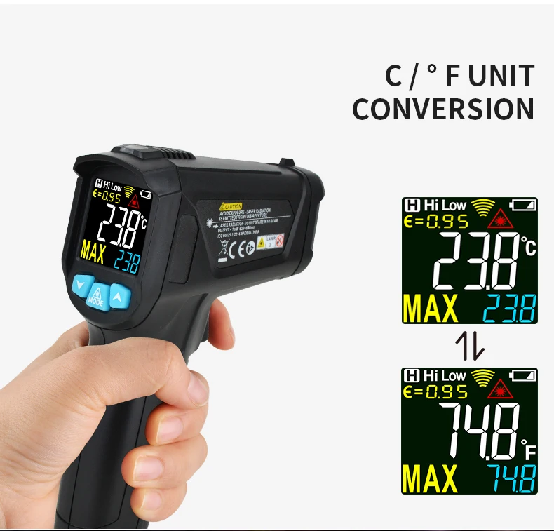 IR02C:-50 ~ 800C, функция термопары, влажность окружающей среды, точка росы, измерение плесени