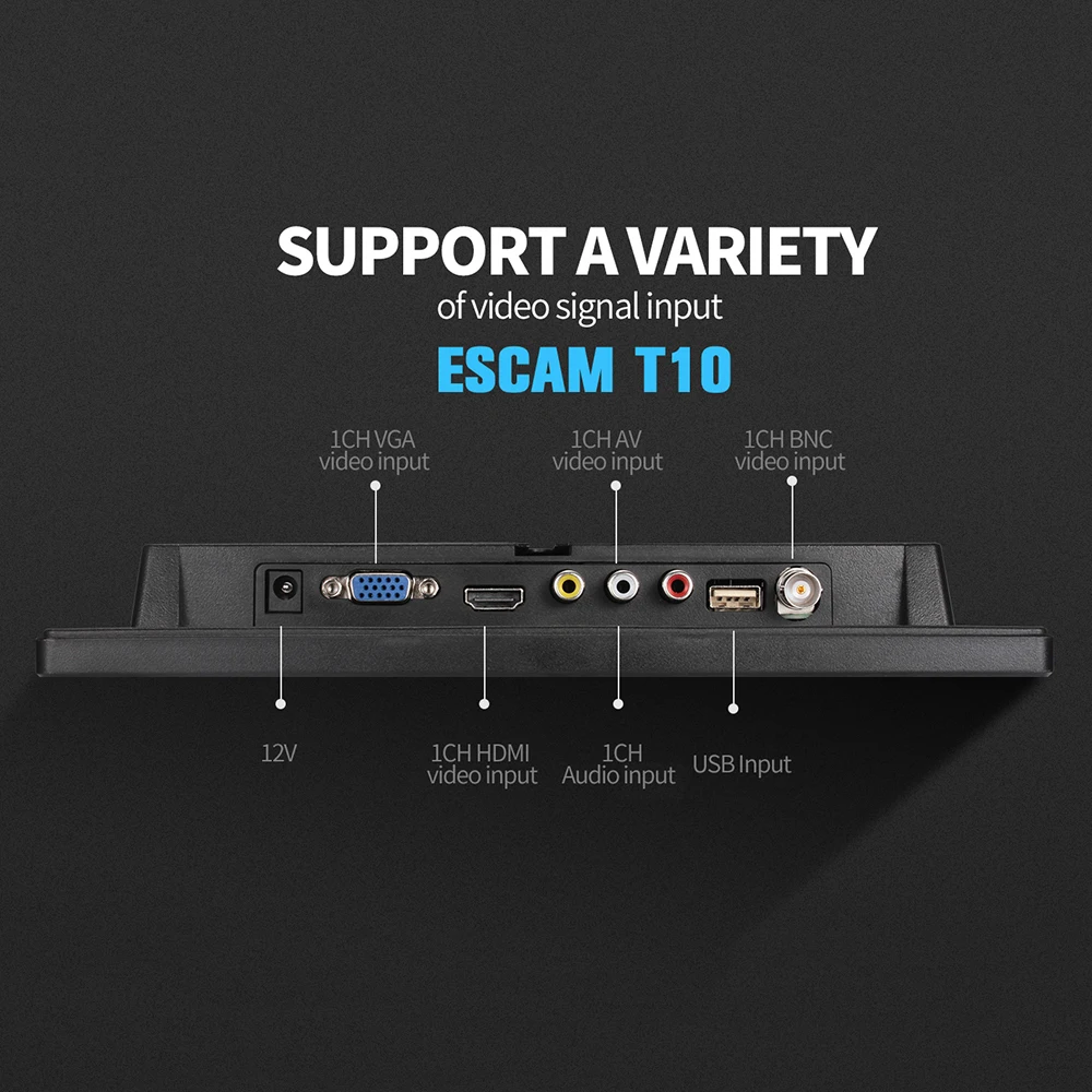 10-дюймовая шпилька на тонкопленочных транзисторах на тонкоплёночных транзисторах ЖК-дисплей для контроля уровня сахара в крови с VGA AV BNC USB Порты и разъёмы для ПК видеонаблюдения 1024x600 Разрешение