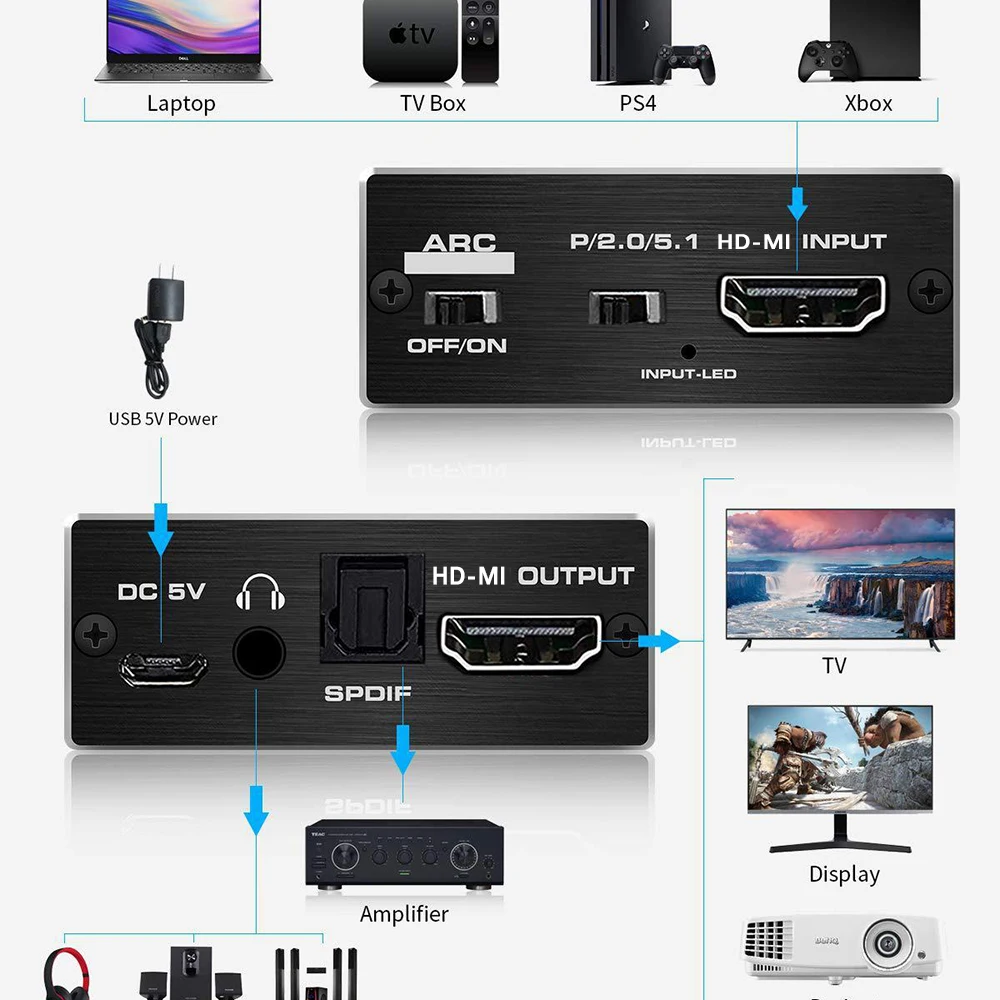 1 X HD-MI аудио экстрактор 1x5V/1A Мощность адаптер 1 X использование r Manualo функция дуги: