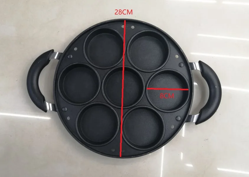 Кастрюля с 7 отверстиями Материал: чугун Тип: сковорода для приготовления пищи/сковорода для выпечки тортов Размер: диаметр сковороды: 28 см Функция: антиобжигающая ручка/антипригарная поверхность для приготовления пищи