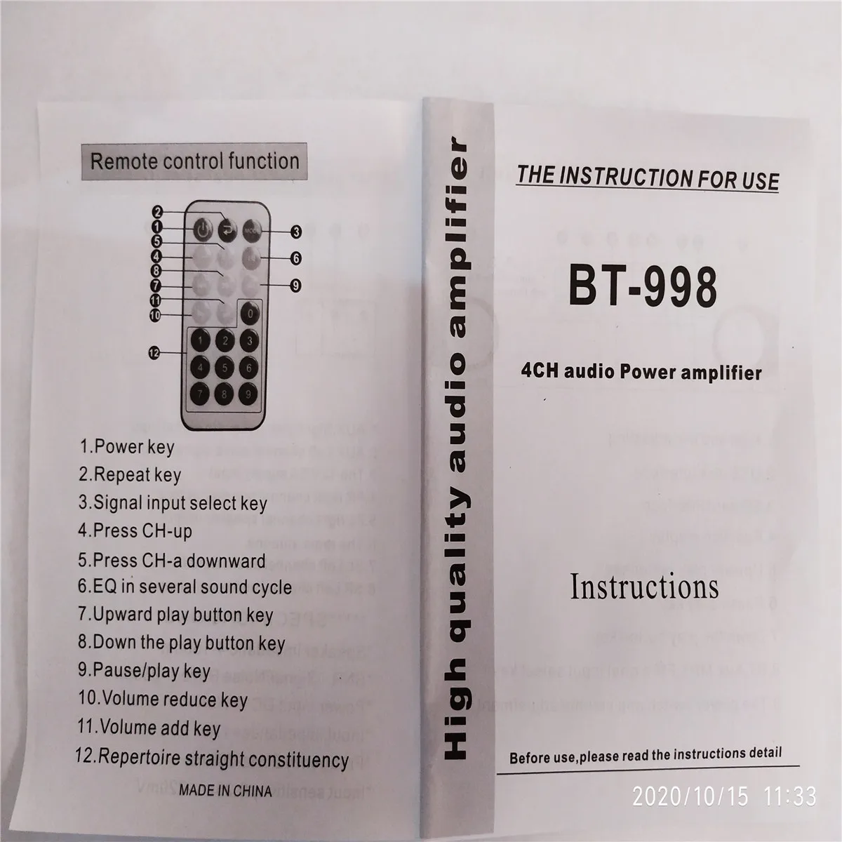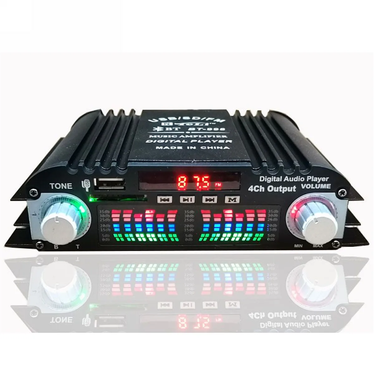 -Four channel output, can connect 2 pairs of speakers below 8 inches