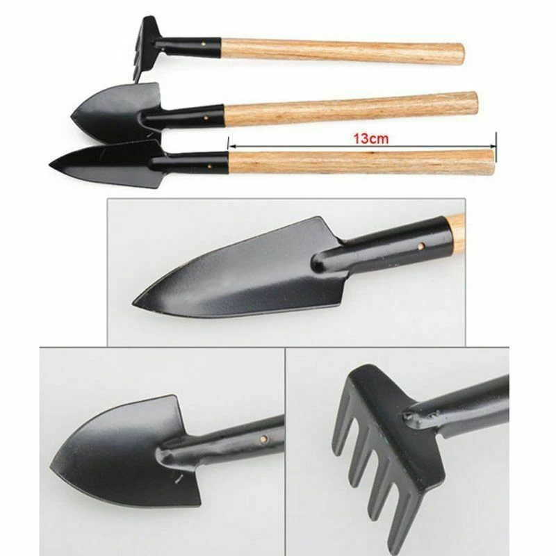 100% качественная новинка. Прочный и простой в использовании Мини-завод сад набор инструментов для садоводства с деревянной ручкой Железная конструкция с удобными деревянными ручками Подходит для пересадки саженцев овощей, посадки цветов, культивирования, прополки Спецификация: Цвет: как на картинке Количество: 3 шт. Грабли: 17x4 см Круглая Лопата: 21,5x3,8 см Острая Лопата: 22x2,5 см Комплекпосылка ция: 1 Набор инструментов для грабли