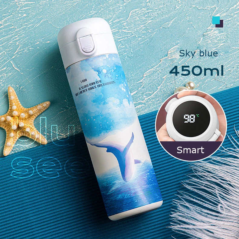 Умный термос-бутылка для воды, 450 мл, с цифровым светодиодным индикатором температуры, термокружки из нержавеющей стали для кофе, интеллектуальные изоляционные чашки