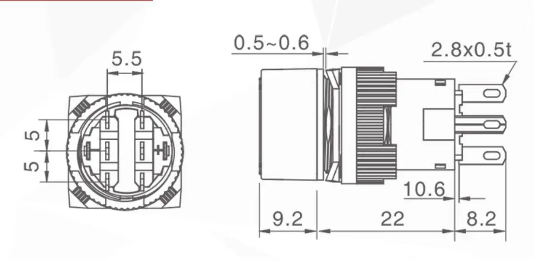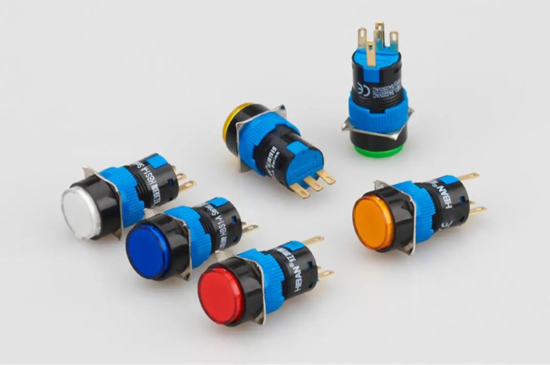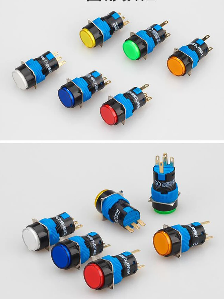 Пластиковый мгновенный и фиксирующий Электрический переключатель 1NO1NC с круглой головкой, 16 мм