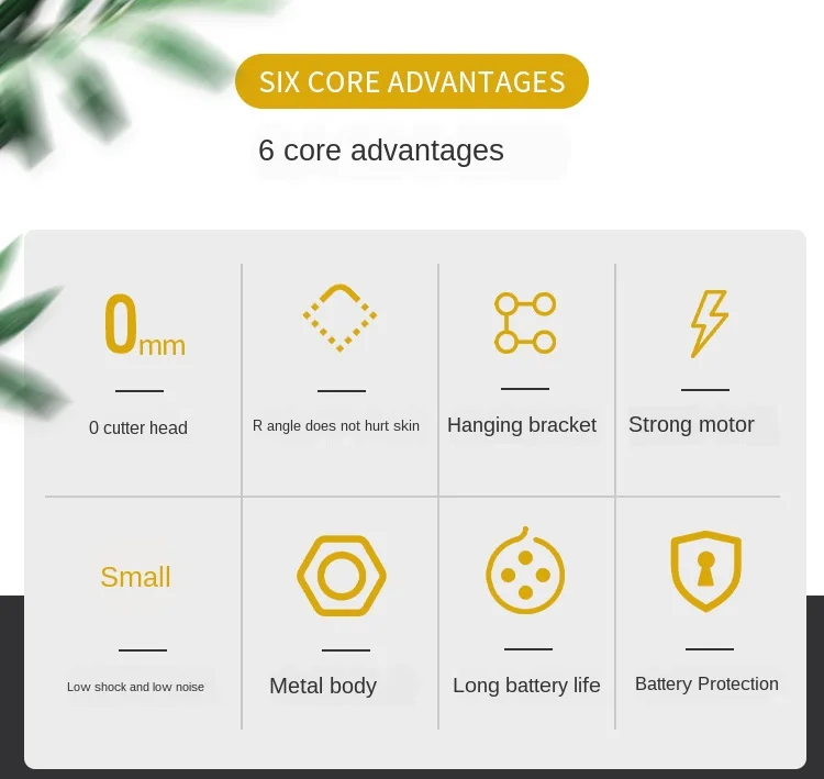 Если вам нужна быстрая доставка, пожалуйста, выберите другой логистический канал. Оптовая и Прямая поставка всегда приветствуются. Пожалуйста, свяжитесь с нами для получения более подробной информации. Спасибо! T9 Ретро масляная голова Электрический ножница Профессиональный парикмахерский резной знак 0 нож для стрижки головы белый клипер для волос Стандартная белая упаковка коробки Особенности: Масляная голова с нулевым эффектом Головка резака типа 0, ультра-короткий шаг зуба не повреждает кожу головы, не замораживает, волосы отрезаны на ощупь, легко моются, острые и не ржавеют Мощный мощный мотор Сильная мощность, стабильный и низкий уровень шума, долгий срок службы, гладкая и гладкая Стрижка волос, не бойтесь мягких и жестких волос различной природы. Металлическая алюминиевая трубка внешний вид Цилиндрический корпус с удобной рукояткой, роскошный Алмазный светильник, вертикальные полосы, гладкая текстура, удобная ручка, стильный внешний вид Параметры продукта: Модель продукта: T9 Мощность: 5 Вт Батарея: 18500 литий-ионный аккумулятор Емкость аккумулятора: литиевая батарея 1200 мАч Время зарядки: 2 часа Номинальное напряжение: 5 В Время использования: 2 часа Размеры: 14*2,5 см Метод зарядки: зарядка Тонкая настройка головки резака двойного назначения: нулевой шаг регулируется Тип головки инструмента: безопасные плотные зубы с острым углом Предел гребень: 1,5 мм, 2 мм, 3 мм, 4 мм Вес единицы: 0,24 КГ Материал режущей головки: титановая Золотая режущая головка Упаковочный лист : Упаковочная коробка, Инструкция (на английском и китайском языках) 、 предел гребень * 4 (1,5 мм, 2 мм, 3 мм, 4 мм), Зарядное устройство, щеточка для чистки