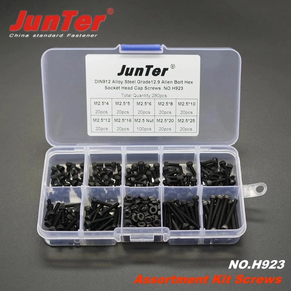Это для одного мешка 280 штук M2.5 (2,5 мм) из легированной стали Grade12.9 с высокой растяжимой головкой винты шестигранные болты DIN912 Ассортимент Комплект № H923.