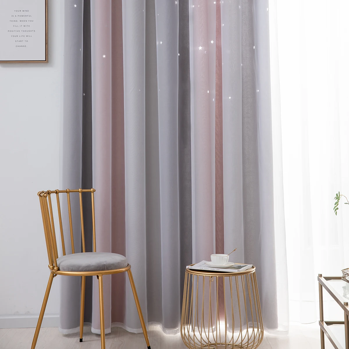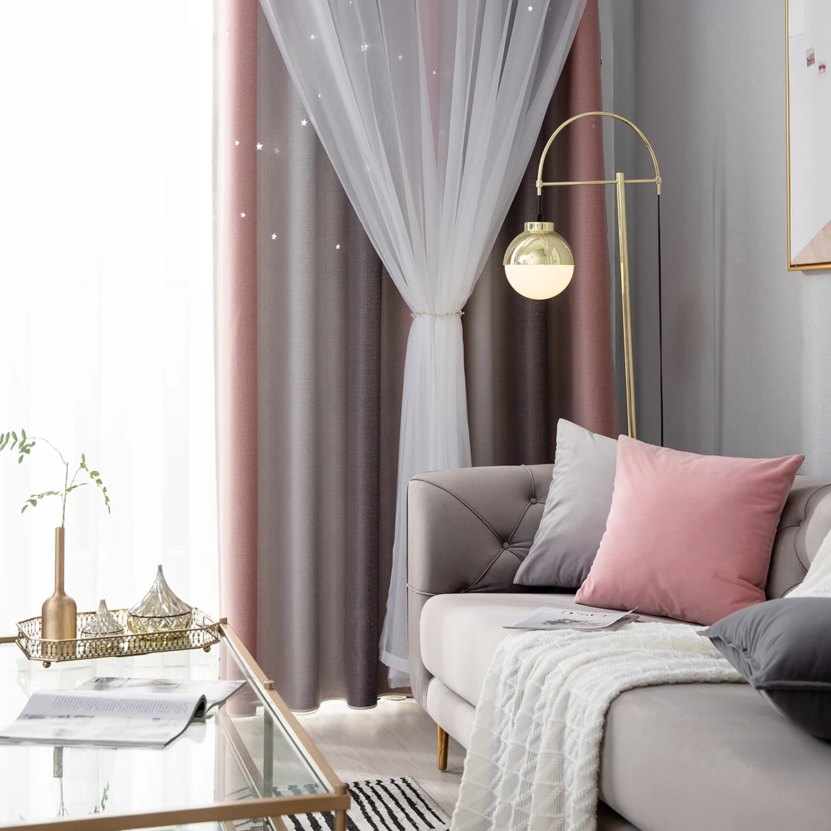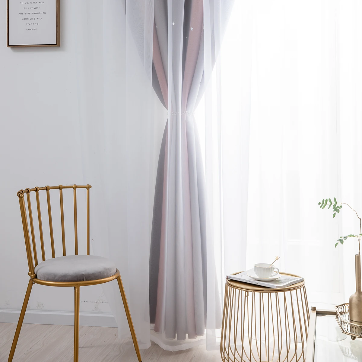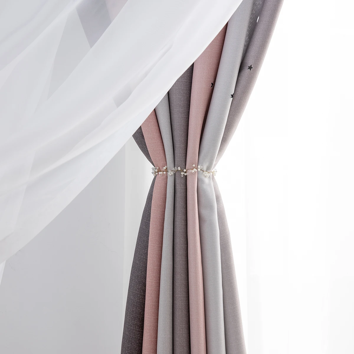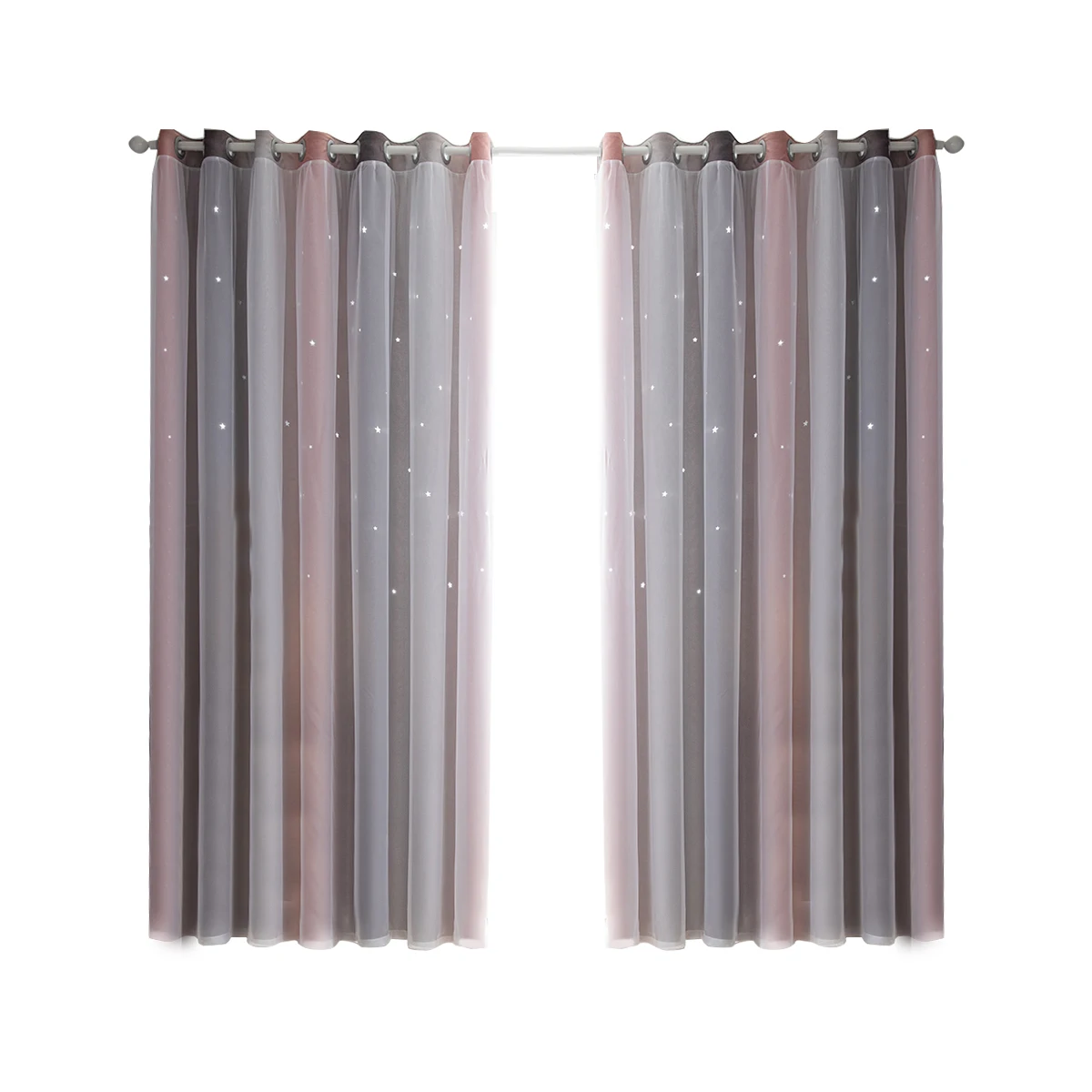 1. Изготовлен изДвухслойныйТкань из полиэстера+ Тюль,Дизайн с отверстиями сделает вашу комнату особенной.