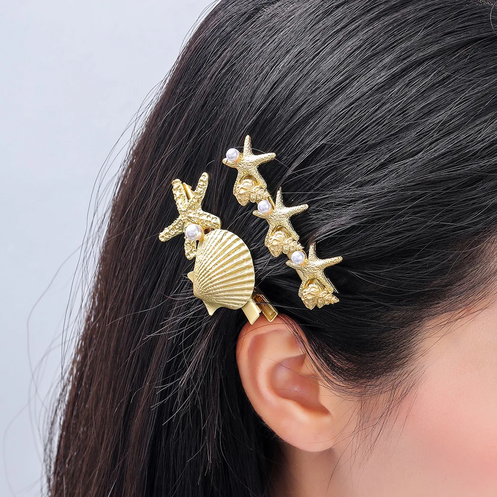 Заколки для волос в богемном стиле с жемчужинами, морская звезда, Модные Заколки для женщин, милые заколки для волос, подарок на день рождения, вечерние аксессуары