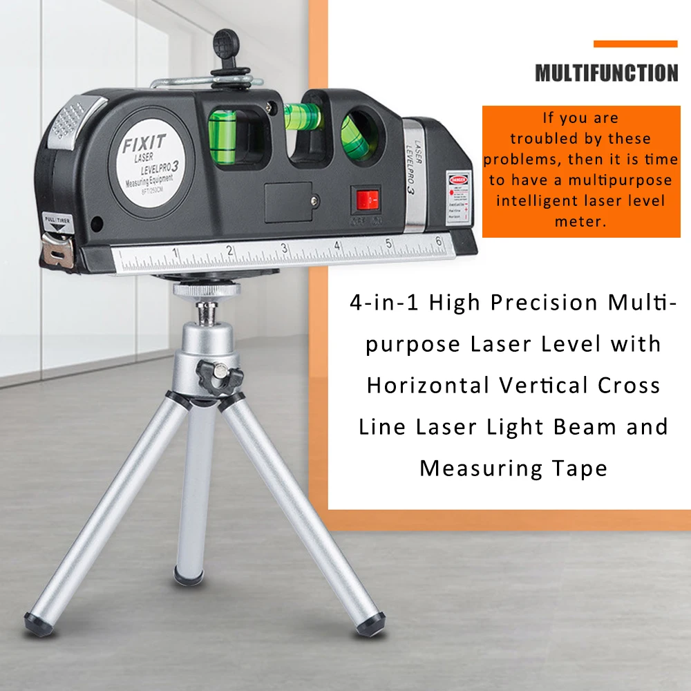 4в1 дизайн, сочетает в себе тонкую измерительную ленту, трехпозиционный Выравнивающий пузырь и новый лазерный уровень, чтобы обеспечить максимальные результаты.
