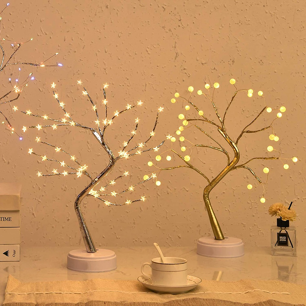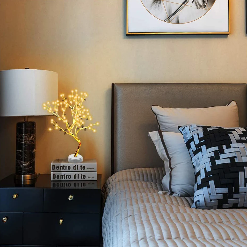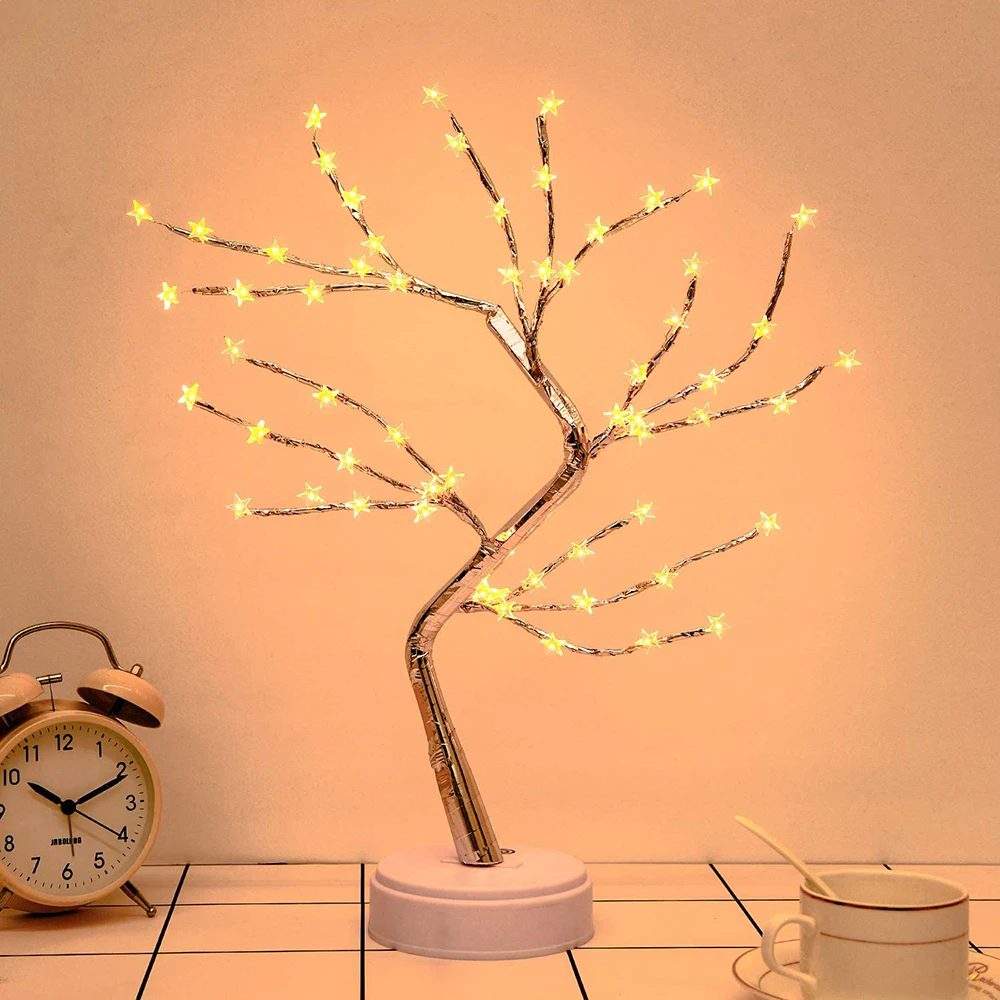 【Уникальный дизайн дерева 】: дизайн в стиле бонсай, естественная форма дерева добавит вашей домашней энергии. 5 видов деревьев на выбор, 108 светодиодов медный провод Светильник дерево, 72 светодиода золотой лист дерево, 60 светодиодов звезда дерево, 36 светодиодов искусственное жемчужное дерево из бисера и 35 светодиодов Вишневое дерево. Светильник с теплым белым/разноцветным светодиодный светильник s, светящийся идеально, делая мир и теплую атмосферу вашей комнаты.