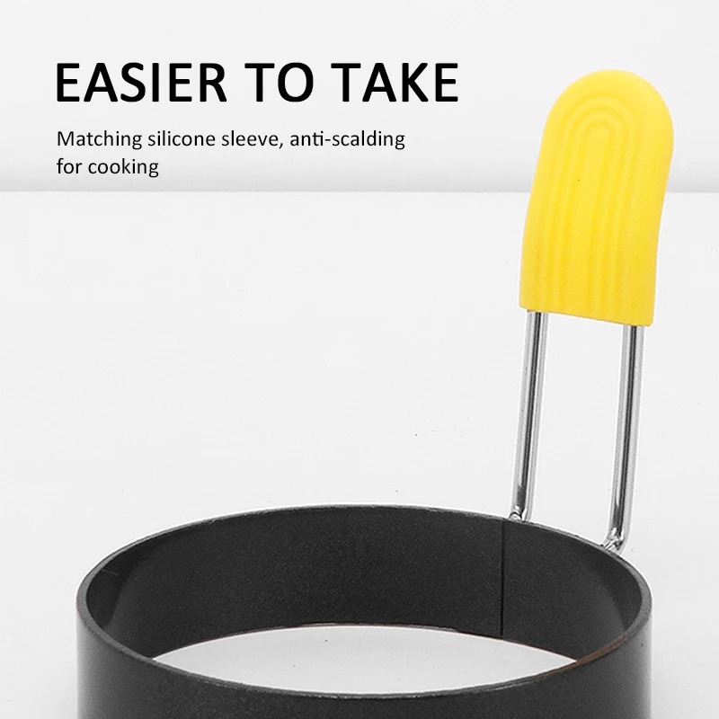 Антиобжигающая Силиконовая ручка: кольца для яиц для жарки с силиконовой ручкой могут предотвратить ожоги, просты в эксплуатации. Крутая силиконовая ручка может быть легко удалена из горшка. Просто нанесите масло на кастрюлю и форму для яиц, поднимите маленькую ручку, поместите ее.