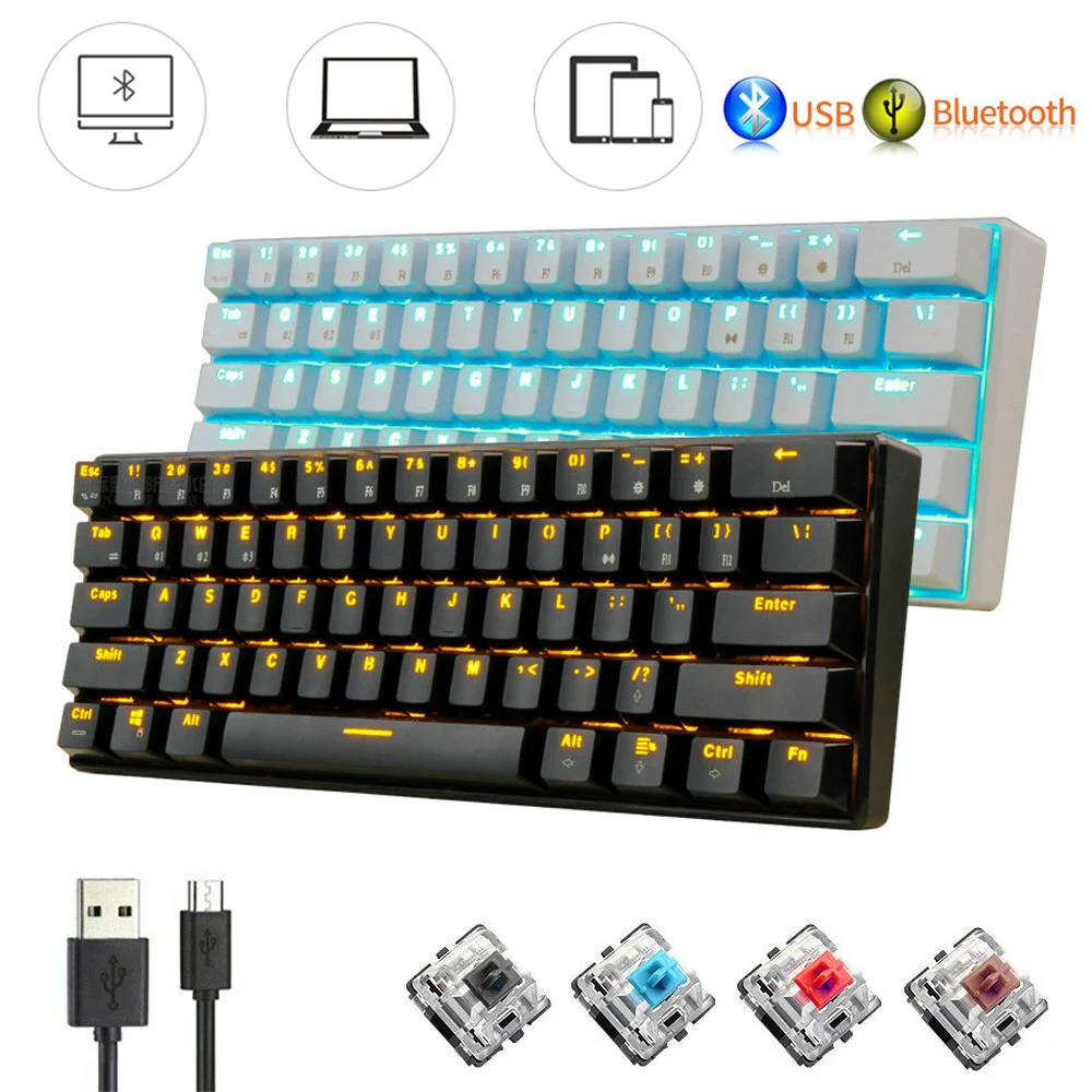 SPASH беспроводные Bluetooth клавиатуры USB Механическая игровая клавиатура 61 клавиша светодиодный подсветка клавиатура Поддержка для Windows/Android/iOS