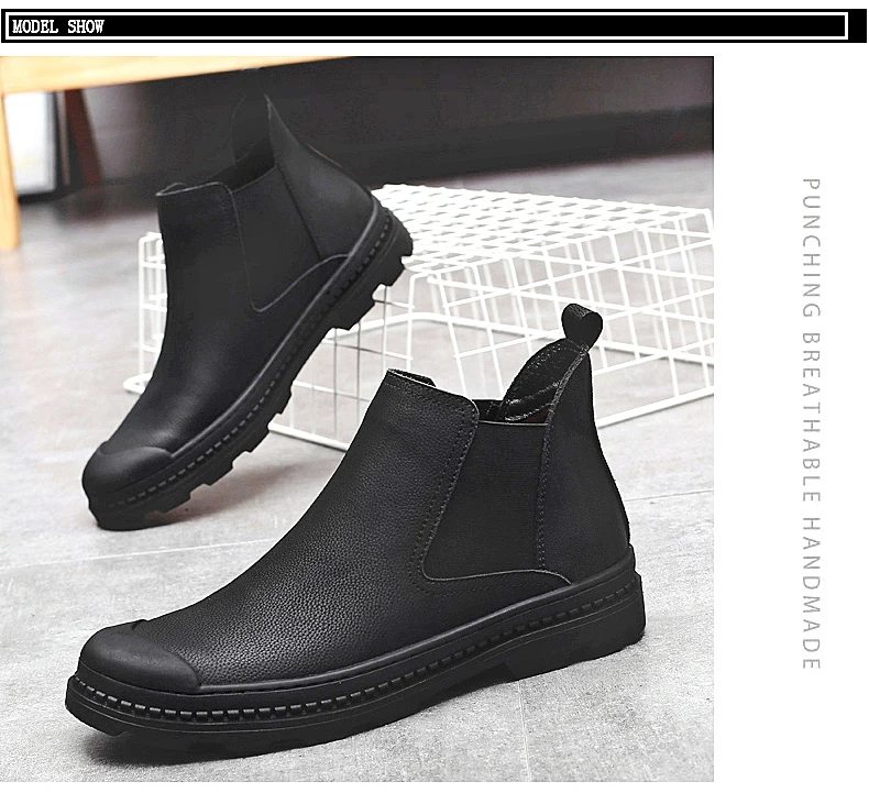 Мужские зимние ботинки «Челси»; Меховая Теплая мужская кожаная обувь; Дизайнерские Мужские модельные ботинки; Мужские повседневные уличные ботинки ручной работы из натуральной кожи