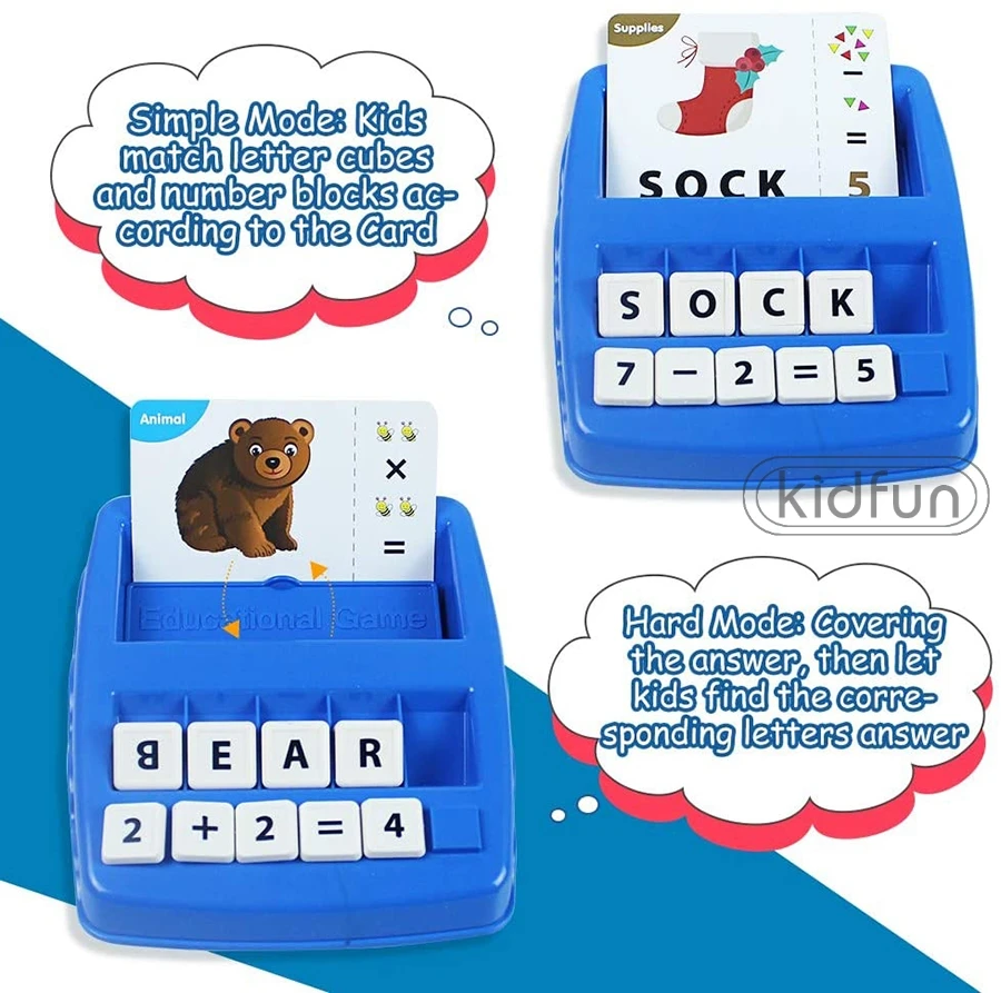 Эта обучающая игра 2 в 1 предназначена для создания игрушек, которые подпитывают воображение, поощряют детей учиться и расти через время игры, развивают естественное любопытство, которое приводит к пожизненному обучению! Это гибкая игрушка, которая предназначена для детей 3 лет. Он не только может улучшить базовое распознавание букв и способность к скоплению лексики, которые все необходимы при чтении, но также может улучшить базовую арифметическую способность. Это идеальный подарок на вечеринка на день рождения, Рождество, Пасха, Хэллоуин, сумку, День благодарения, Новый год для детей дошкольного возраста; Для маленьких детей.