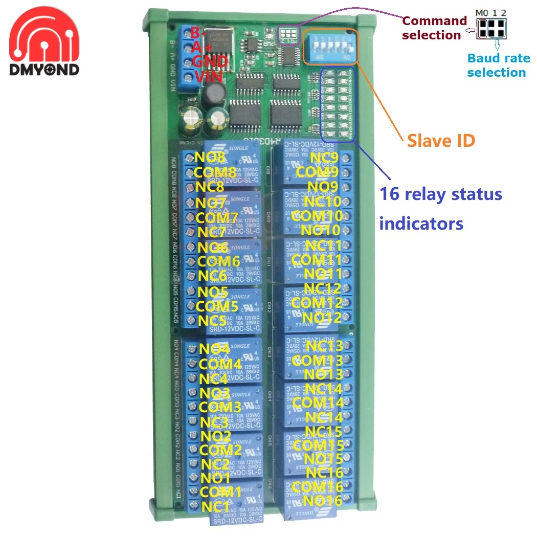 Modbus RTU 12V 10A 16-канальный видеорегистратор din-рейка коробка PLC расширение доска RS485 триггерный релейный модуль Modbus RTU реле RTU дистанционный умный Управление
