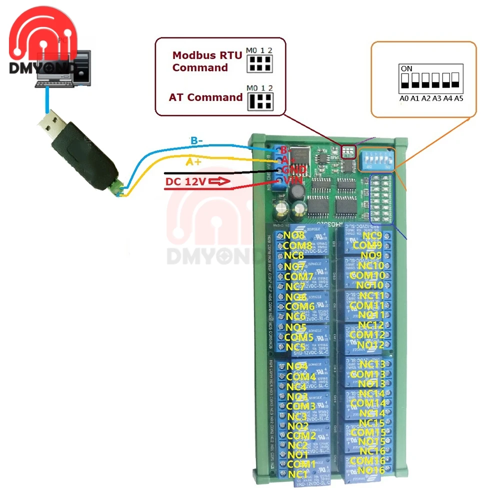 1 при управлении модуль, вы можете использовать MODUBS RTU инструкция или в инструкции. В командном режиме переключатель циферблата (рабочий адрес) недействителен и может управлять только одним модулем одновременно.