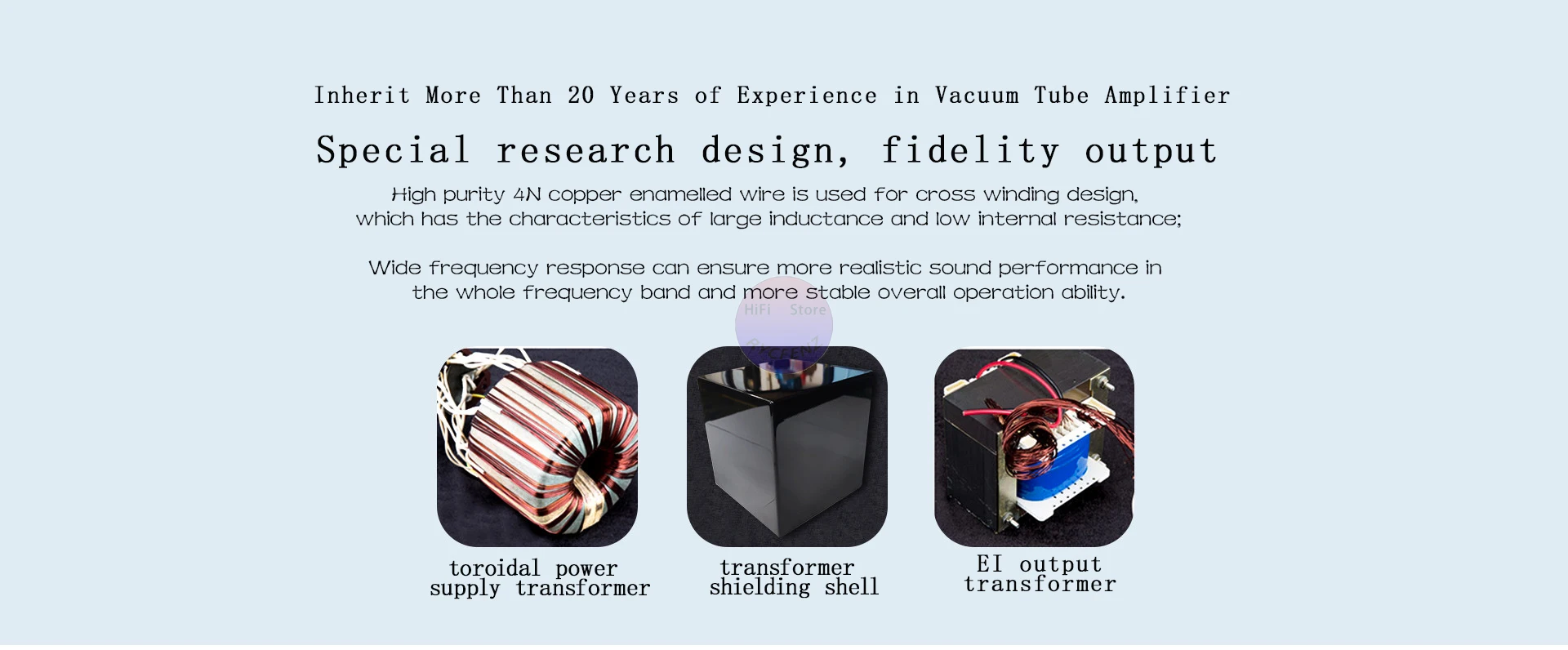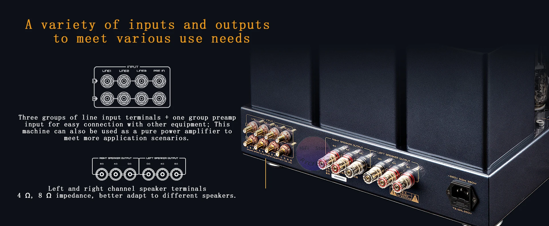 Премиум части: Альп регулятор громкости, аудио класса конденсаторов и резистора из углеродистой пленки, тороидный трансформатор для источника питания, широкая полоса пропускания Эи выходной трансформатор, керамические трубчатые гнезда и т. Д.