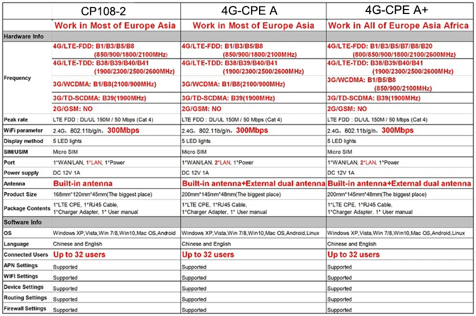 Пожалуйста, проверьте маршрутизатор, работает ли он с вашим оператором или нет, ознакомившись с приведенным ниже чатом. Если вы не в стране,Пожалуйста, позвоните своему оператору, чтобы получить частые полосы, которые он запускает илиПосмотрите на веб-сайт ниже.