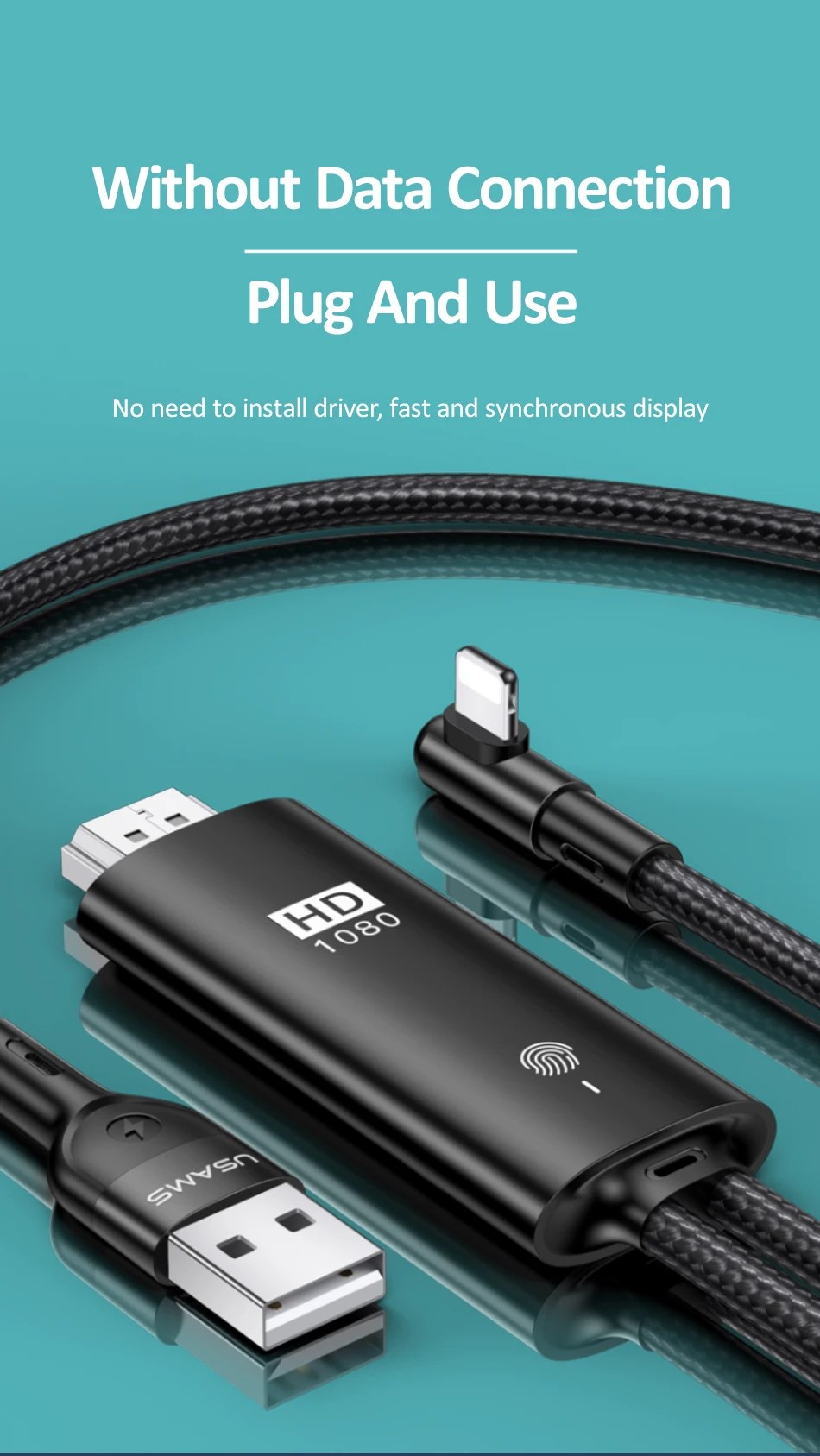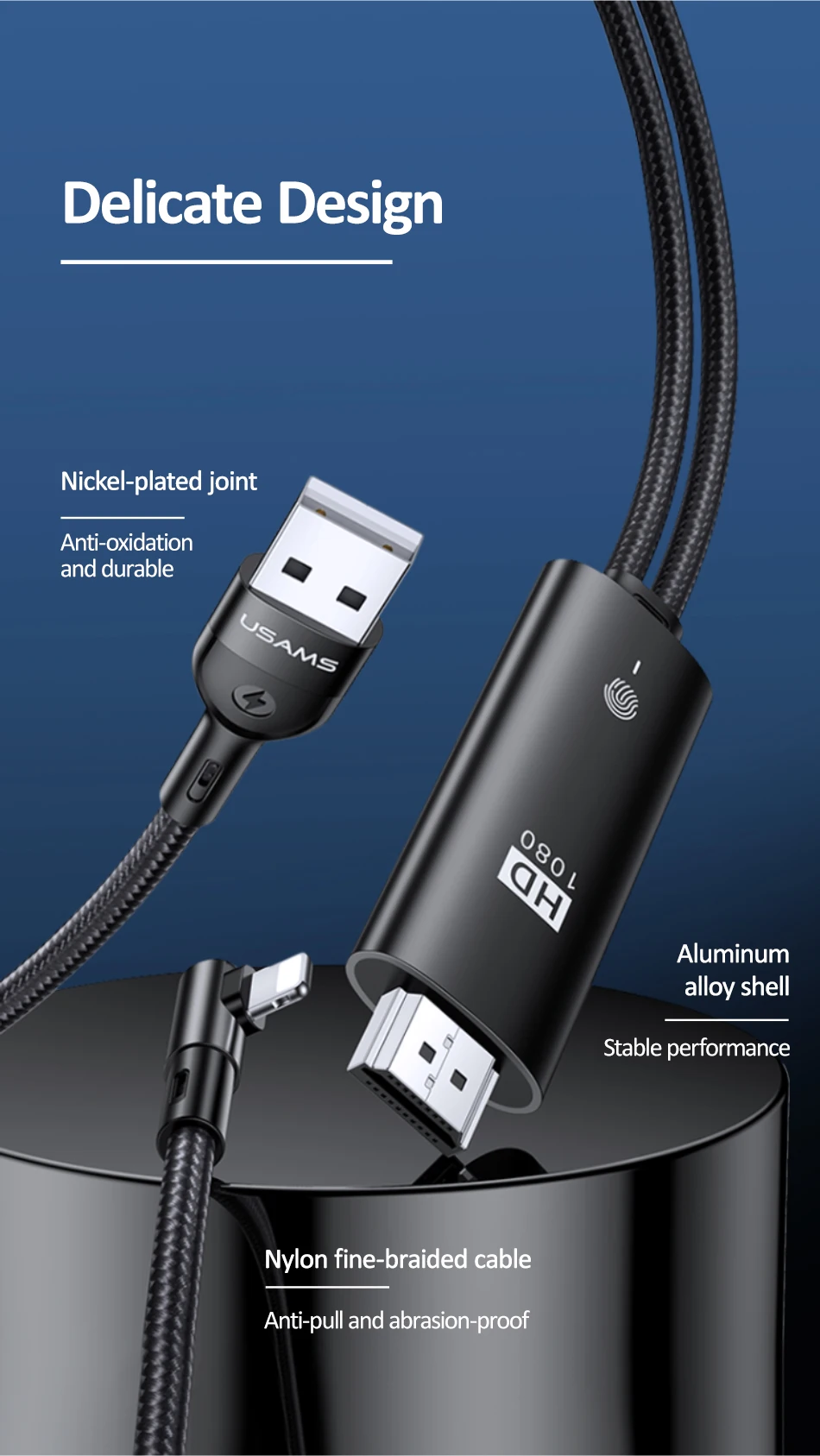 USAMS Lightning-HDMI-совместимый конвертер USB HDMI-совместимый HD 4K кабель для iPhone 11 8 X Max iPad к HDMI-совместимый ТВ AV адаптер проектор дисплей HDTV