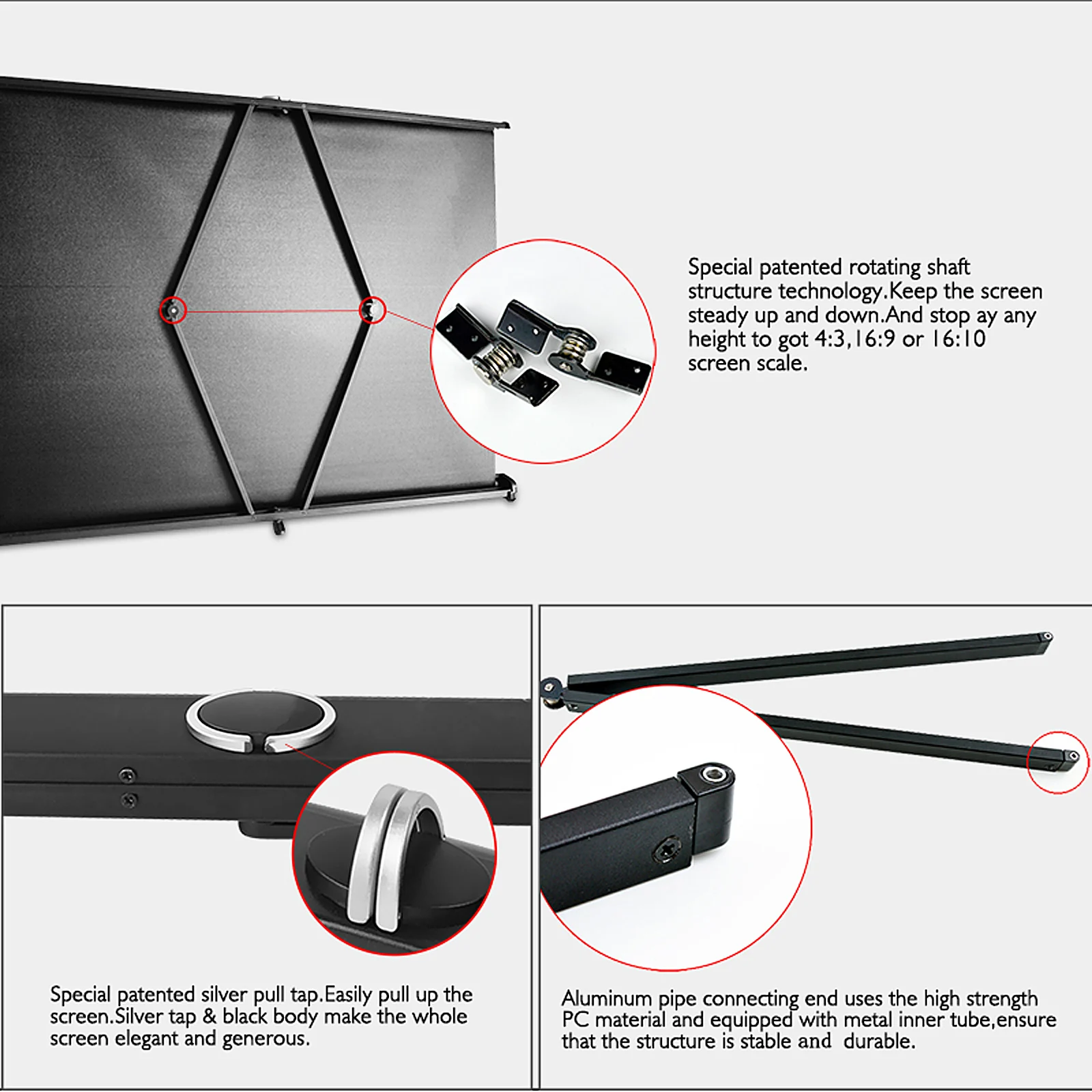 Этот портативный Настольный проекционный экран является самым компактным и удобным для путешествий вариантом для небольших встреч и мобильных презентаций. Этот уникальный экран проектора позволяет быстро и легко установить на любую столешницу. Он широко используется в бизнес-презентациях, обучении, домашних развлекательных мероприятиях и т. д.
