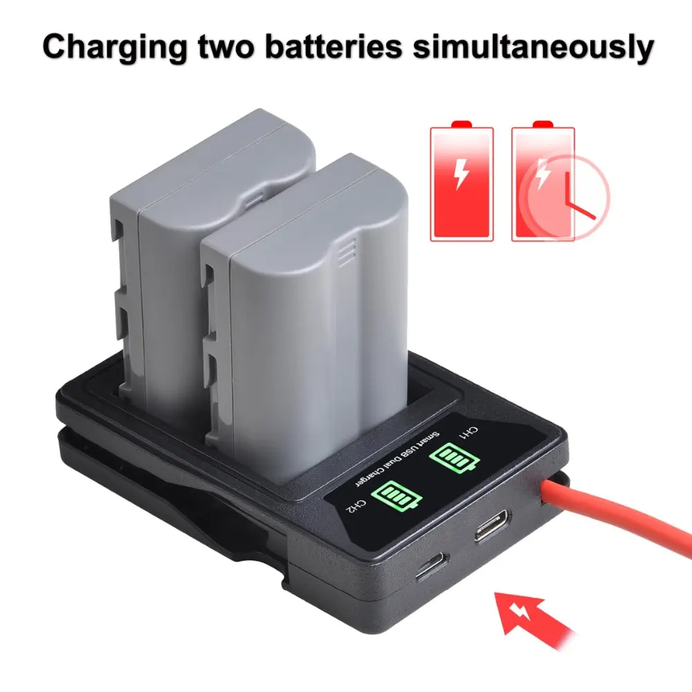 Аккумулятор 2000 мАч EN-EL3e + двойное зарядное устройство USB с портом type-C