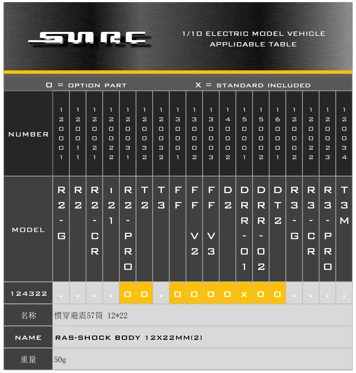 SN-RC 124322 1:10 RCAccessories RAS-SHOCK BODY 12X22MM(2)