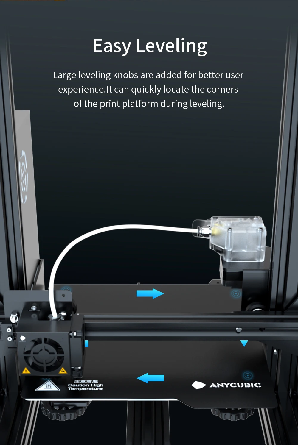 Quickly locate the corners of the print platform during leveling, maximize printing efficiency
