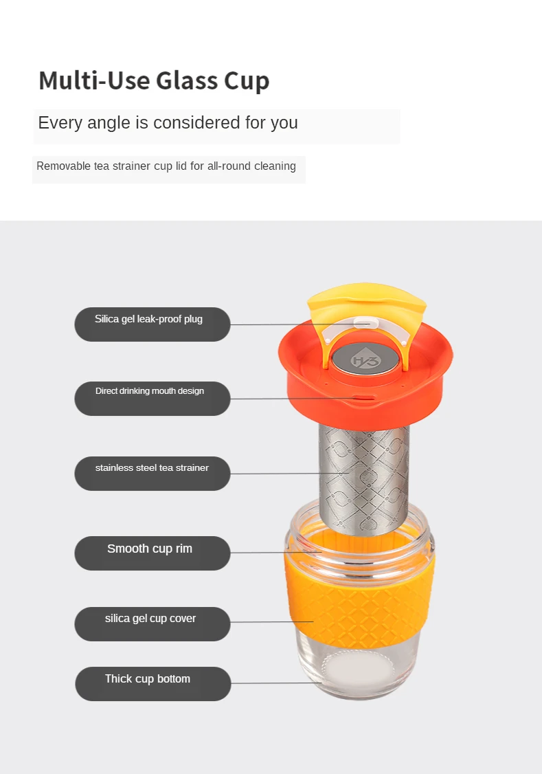 Сырье: боросиликатное стекло с высоким содержанием боросиликата, крышка для бутылки (PP пластик, TPR), крышка для чашки (TPR)
