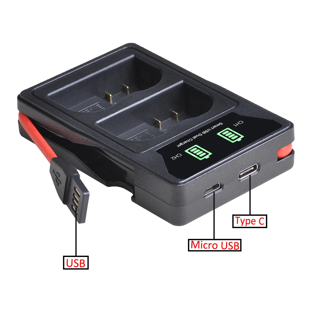 ★【Удобно и экономно времени: маленький и легкий светильник со съемным шнуром, 2 независимых разъема для зарядки могут одновременно заряжать 2 батареи или заряжать одну батарею отдельно.