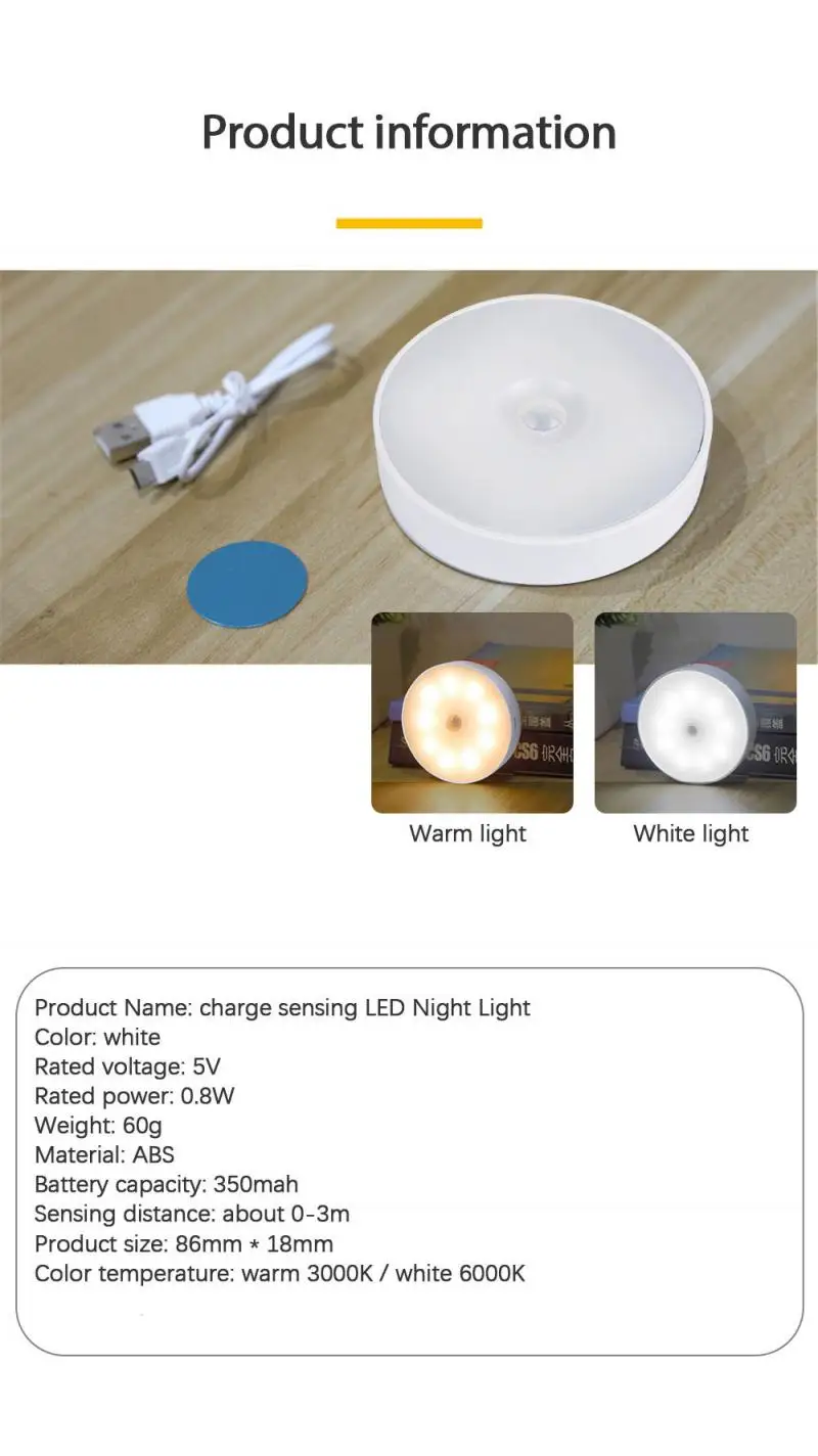 Наименование товара: Зарядка зондирования Светодиодный ночной Светильник