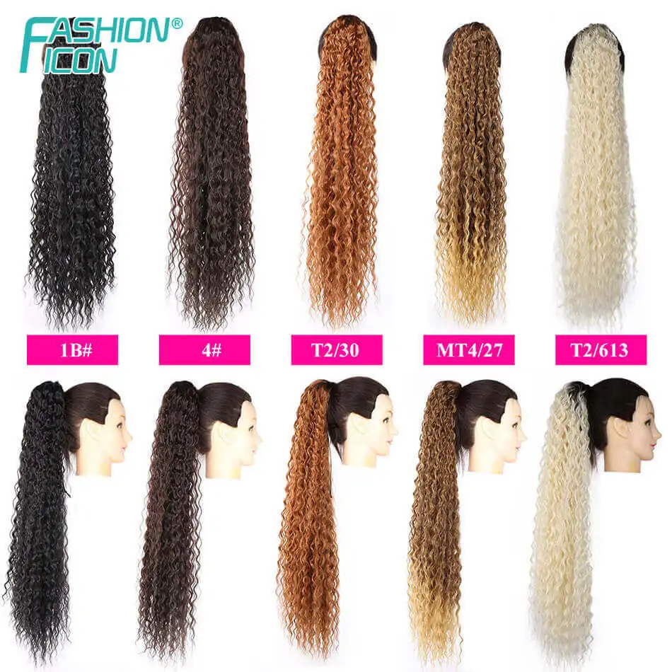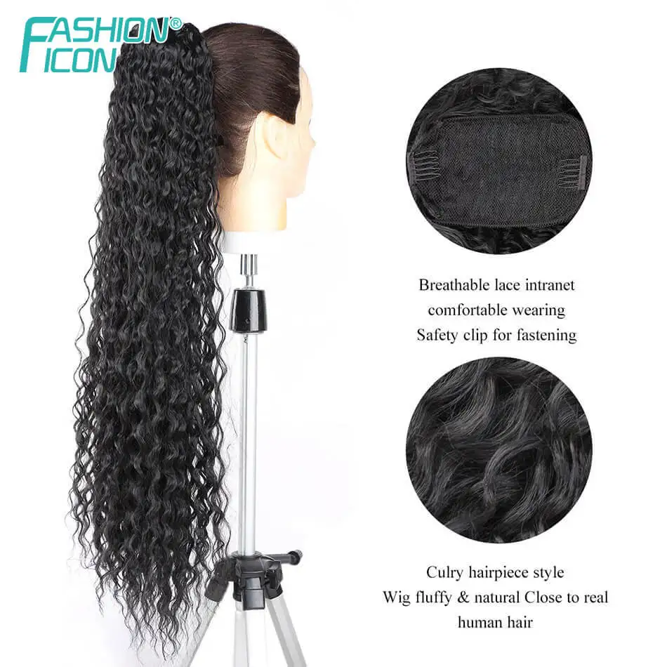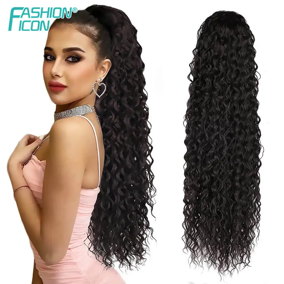 Синтетические 32 дюйма длинные кудрявые шнурки конский хвост для женщин афро кудрявые волны кукурузы Wavey клип на конский хвост по моде значок