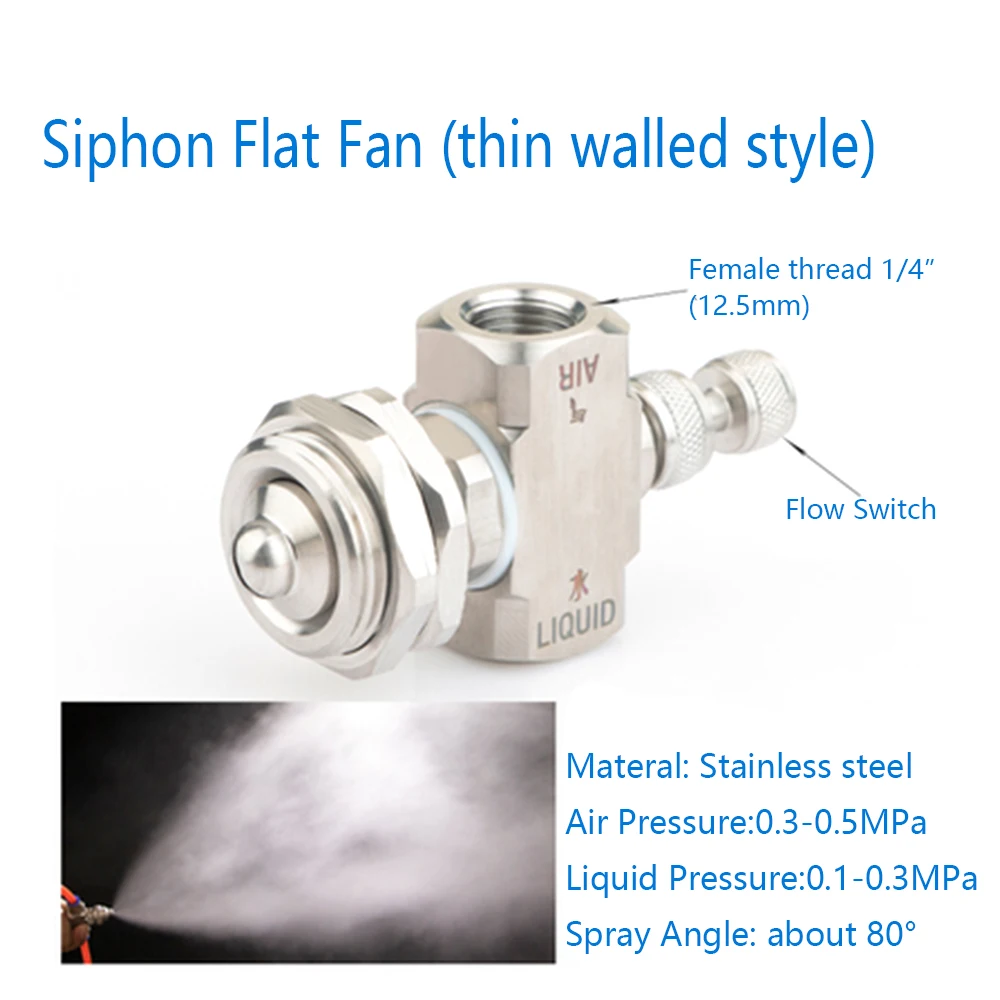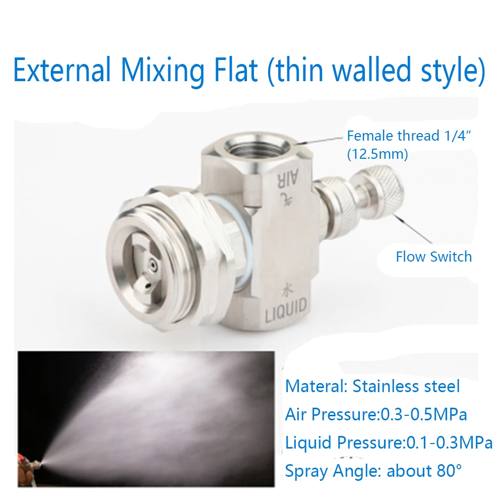 Достигается за счет регулировки давления воздуха и жидкости в настройке распылителяПолучение более тонкого распыления-это давление воздуха и или понижение давления жидкости, что приводит к высокому соотношению расхода воздуха и расхода жидкости.Внутренние комбинированные функцииЖидкость и воздух смешиваются внутри для получения полностью распыленного спрея.Потоки жидкости и газа не являются независимыми и изменение потока воздуха повлияет на поток жидкостиInner miz использует настройки давления и abailable со следующими шаблонами распыления:360 круговой распылитель плоский распылитель, эллиптический распылитель, плоский распылитель, круглый распылитель, широкоугольный Круглый распылительВнешний микс функцийЖидкие и воздушные потоки смешиваются снаружи насадкиРасход воздуха и жидкости можно контролировать самостоятельноЭффективен для жидкостей с повышенной вязкостью и абразивных подвесовВнешняя смесь может использовать сифонные установки или настройки давленияПри использовании сифонной установки образуется круглый распылительПри установке давления 0up производится Плоский Рисунок распыленияОписание продукта