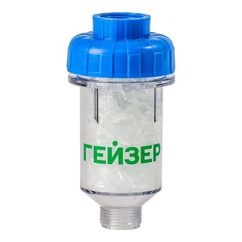 Фильтр Гейзер 1Пф с полифосфатом используется для защиты нагревательных элементов стиральных, посудомоечных машин и водонагревателей от накипи