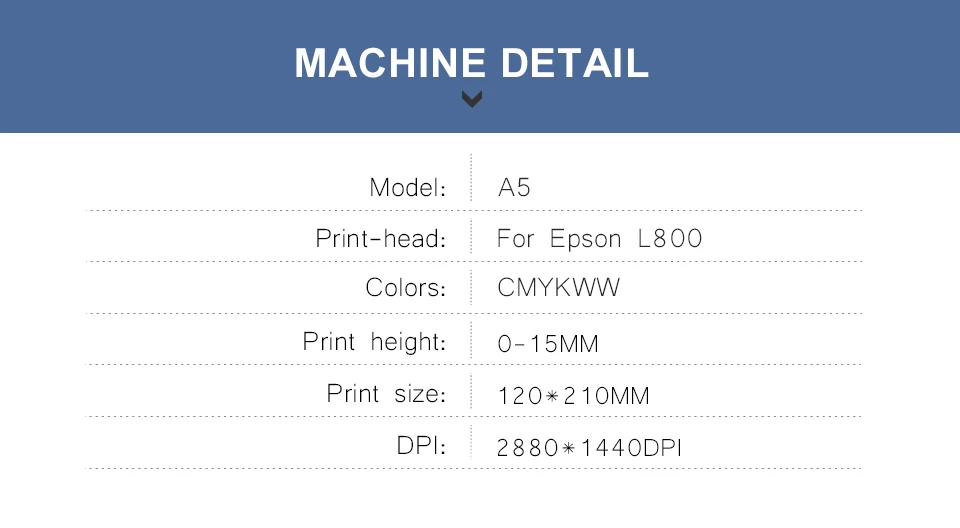 Продукт:Один набор полностью автоматических мини УФ-принтеров A5