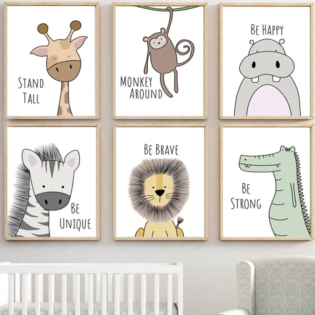Холст с мультяшным животным Детская Безрамная ткань с рисунком