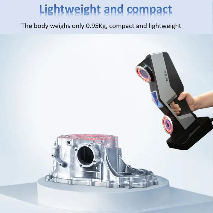 Оборудование использует Бесконтактный метод измерения, и процесс сбора данных не вызовет ошибки в измерении деформации из-за трения и давления контакта. Эффективная скорость обработки данных, данные могут быть отсканированы немедленно, что может точно отражать информацию о поверхности сложных форм. ● Ультра-портативный лазерный ручной 3D сканер ● Точность составляет 0,03 мм, в соответствии с немецким стандартом VDI/VDE 2634. ● Адаптироваться к комнатным и наружным задачам измерения в различных сложных условиях ● Маленький, светильник, вес 0,95 кг, может работать в узком пространстве · Быстрая скорость сканирования, простая работа ● Большое измерительное пространство и хорошая стабильность ● Почти неограниченное 3D сканирование, независимо от размера объекта, материала и цвета